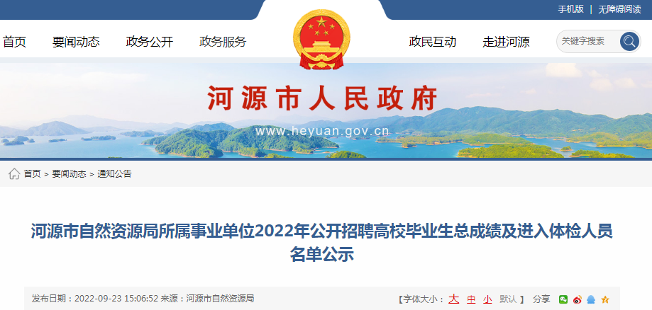2022广东河源自然资源局所属事业单位公开招聘高校毕业生总成绩及进入体检人员名单公示09-24