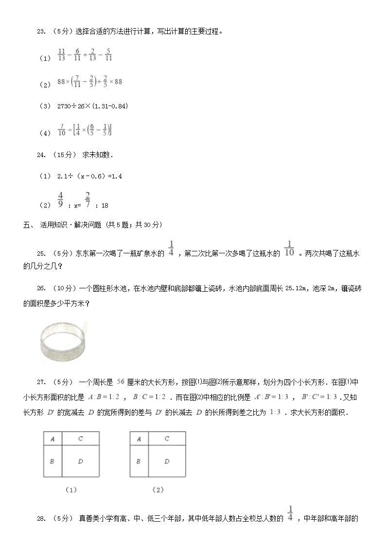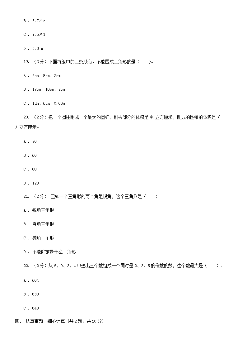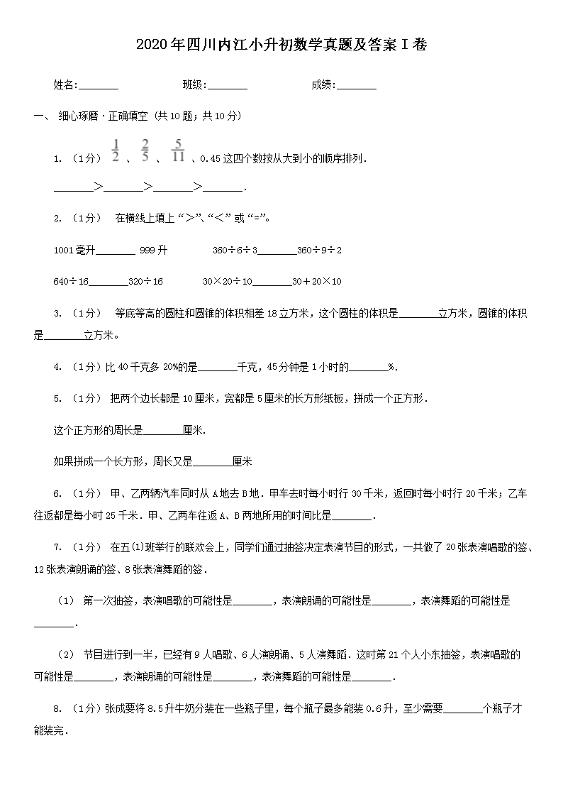 2020年四川内江小升初数学真题及答案I卷(Word版)06-29