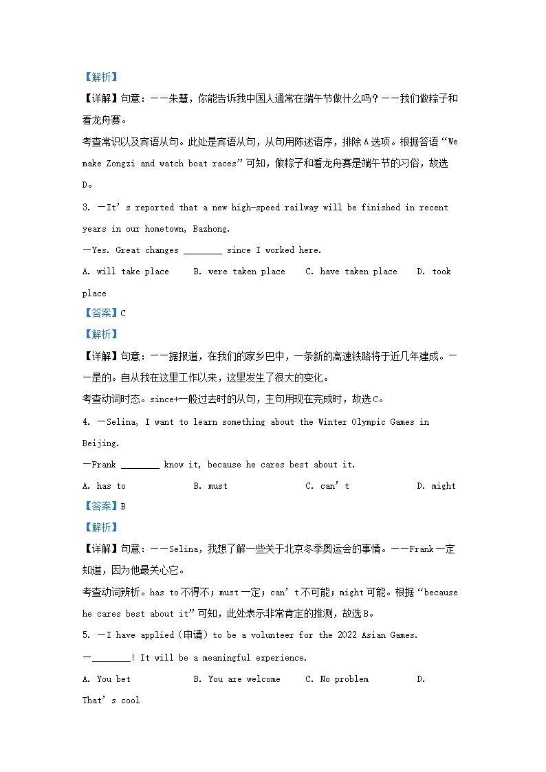 2022年四川省巴中市中考英语真题及答案(Word版)05-27
