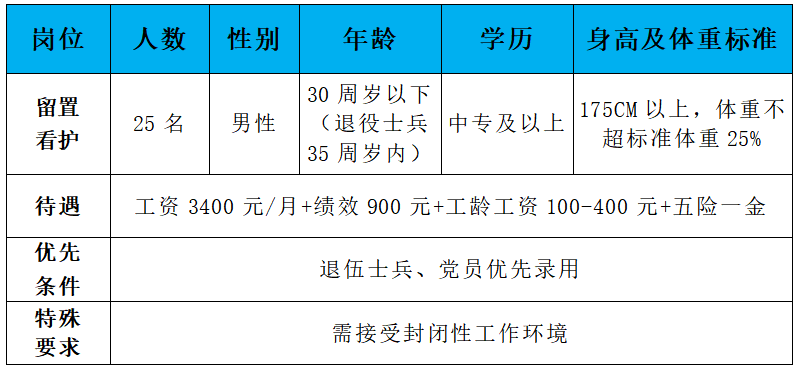 5、身心健康,体貌端正,无残疾、无口吃、无重听、无纹身、无色盲、无传染性疾病,*眼视力在4.8以上,直系亲属及本人无精神疾病病史,具有正常履行工作职责的身体条件;