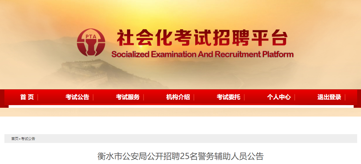 【#招警考试# #2023年河北衡水市公安局招聘警务辅助人员公告(25人)#】®文档大全网从社会化考试招聘平台了解到,2023年河北衡水市公安局招聘警务辅助人员25人,相关事宜详情如下: