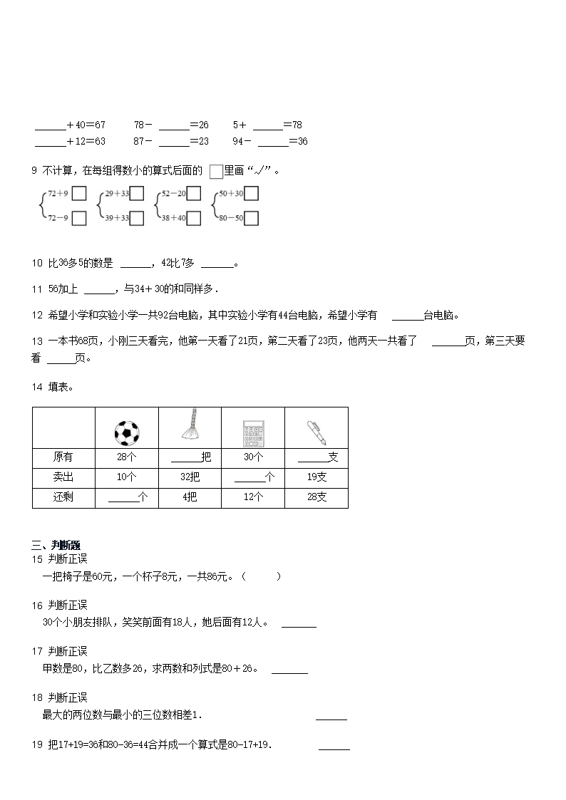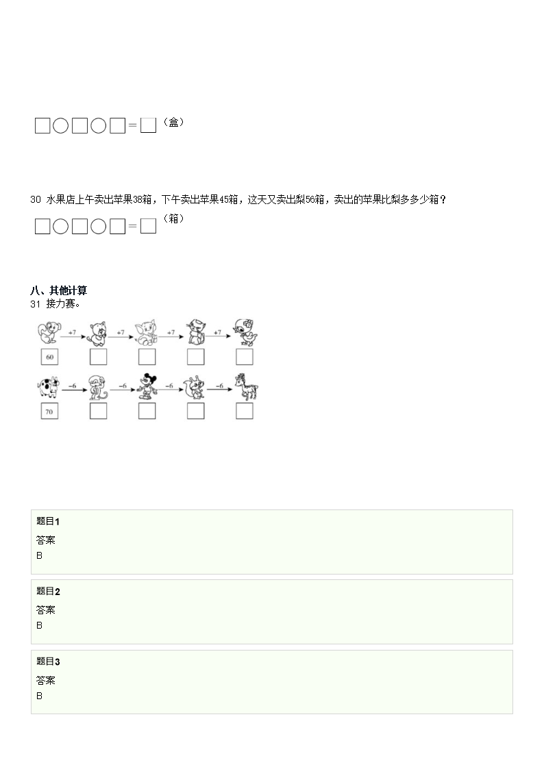 2023年四川小学一年级下学期数学第七单元测试试卷及答案(Word版)07-05