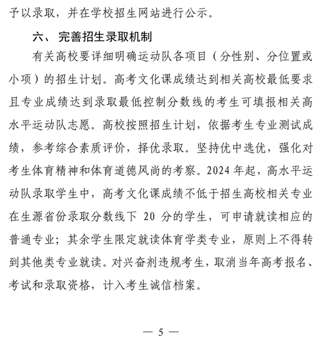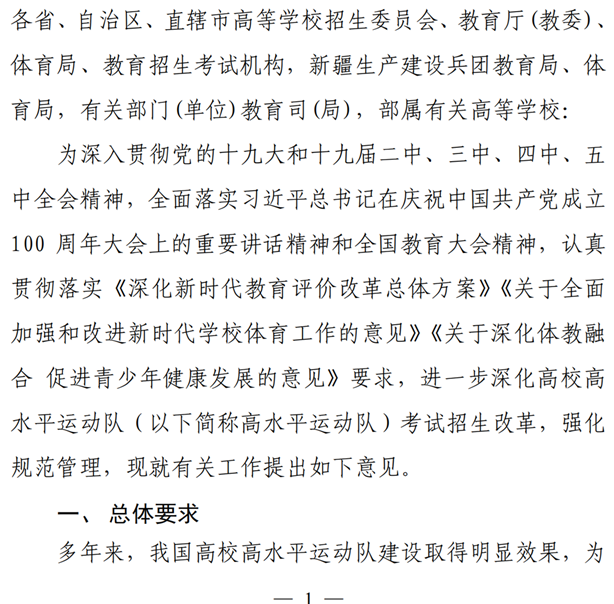 教育部及国家体育总局关于进一步完善和规范高校高水平运动队考试招生工作的指导意见04-03