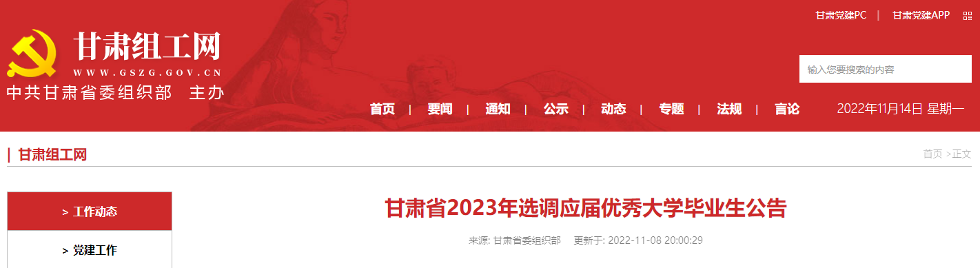 2023年甘肃选调生报名时间及报名入口【2022年11月14日-12月2日】11-15