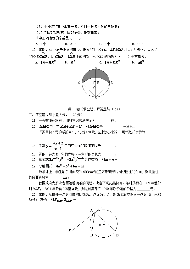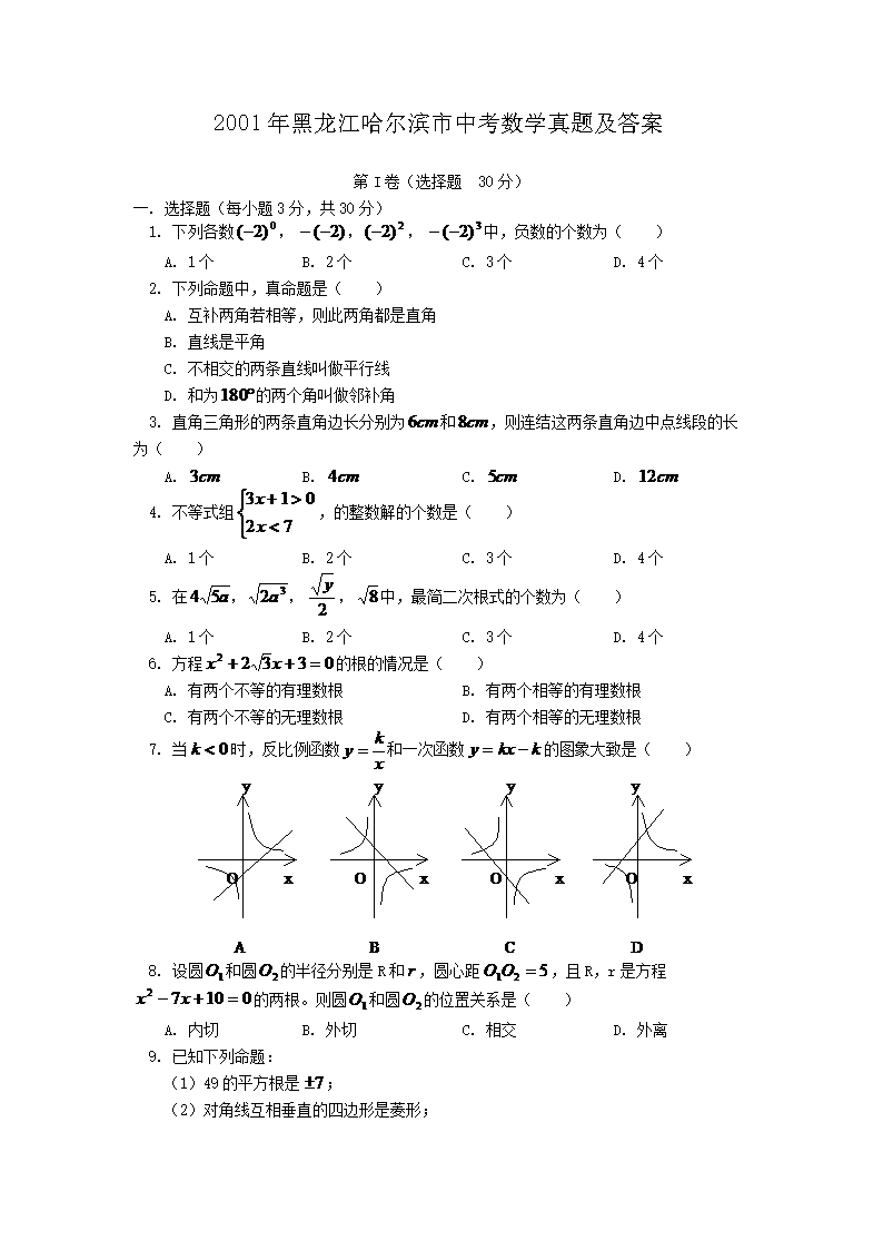 【文档预览】 文档大全网整理发布2001年黑龙江哈尔滨市中考数学真题及答案(Word版),前五页预览如下:
