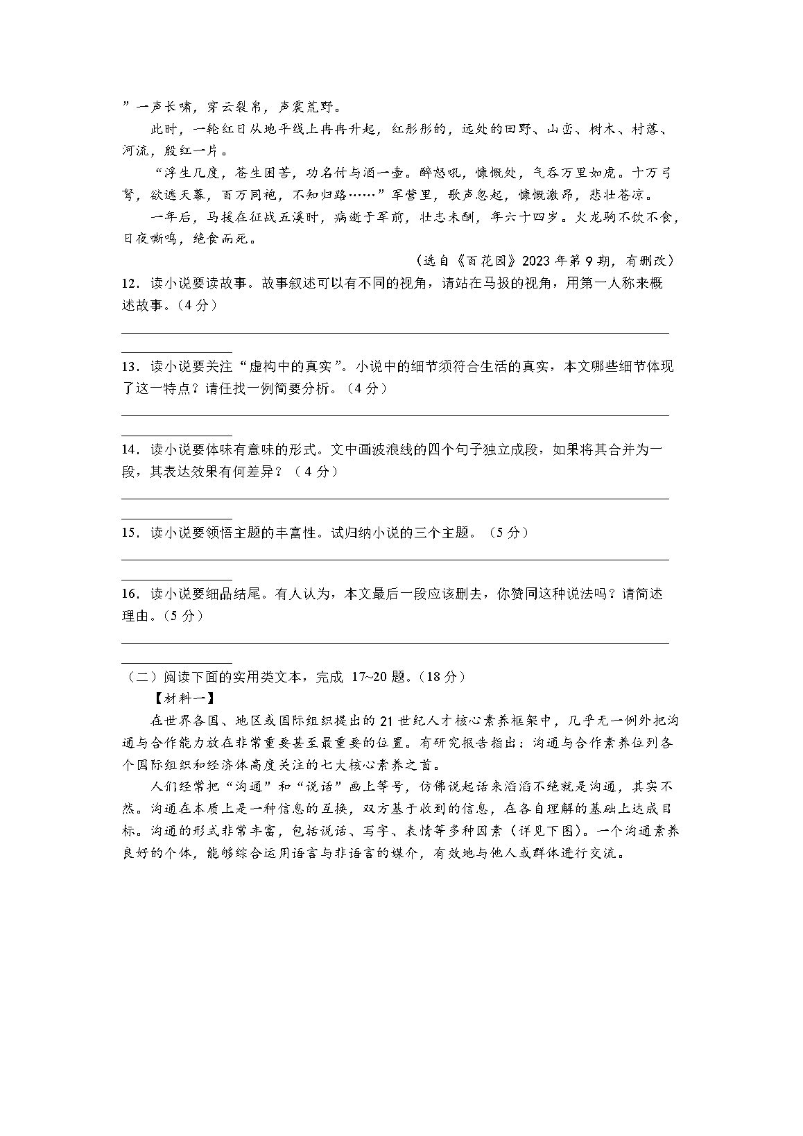 2023年重庆万盛中考语文真题及答案(A卷)(Word版)06-16