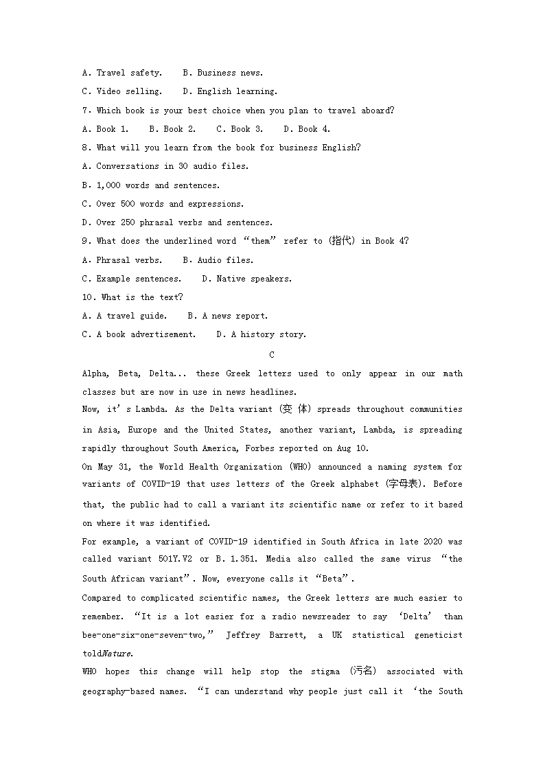 2023年安徽普通高中学业水平考试英语试题及答案(Word版)07-29