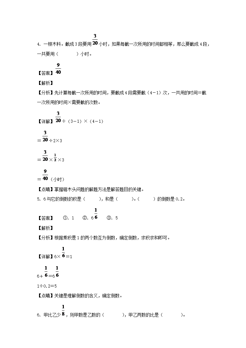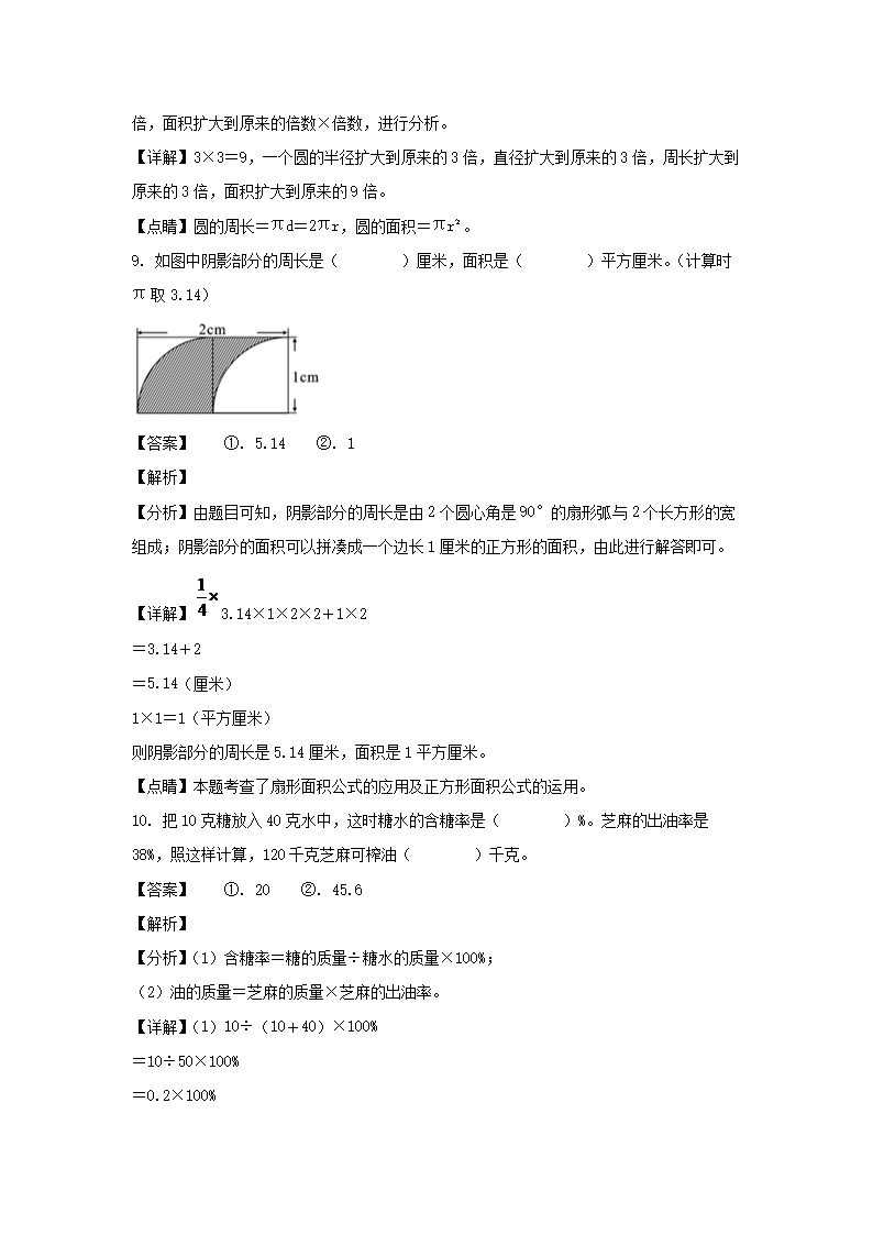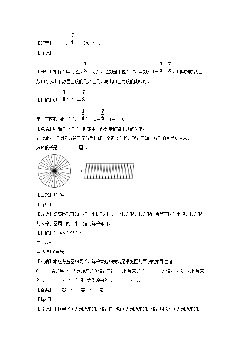 2021-2022年江西抚州市金溪县六年级上册期末数学试卷及答案(人教版)(Word版)10-11
