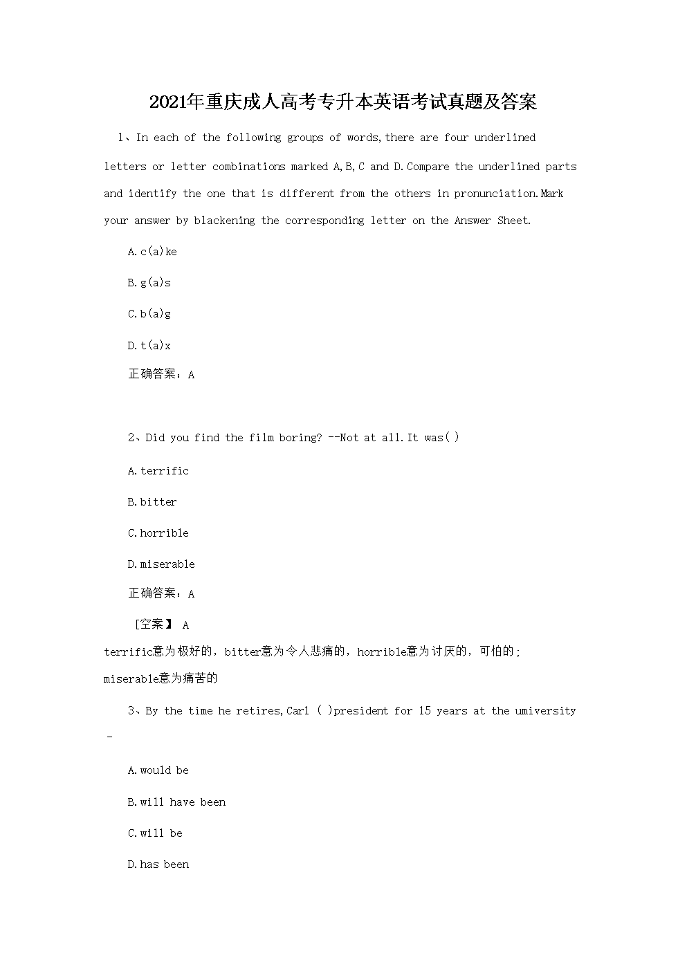 2021年重庆成人高考专升本英语考试真题及答案(Word版)05-26