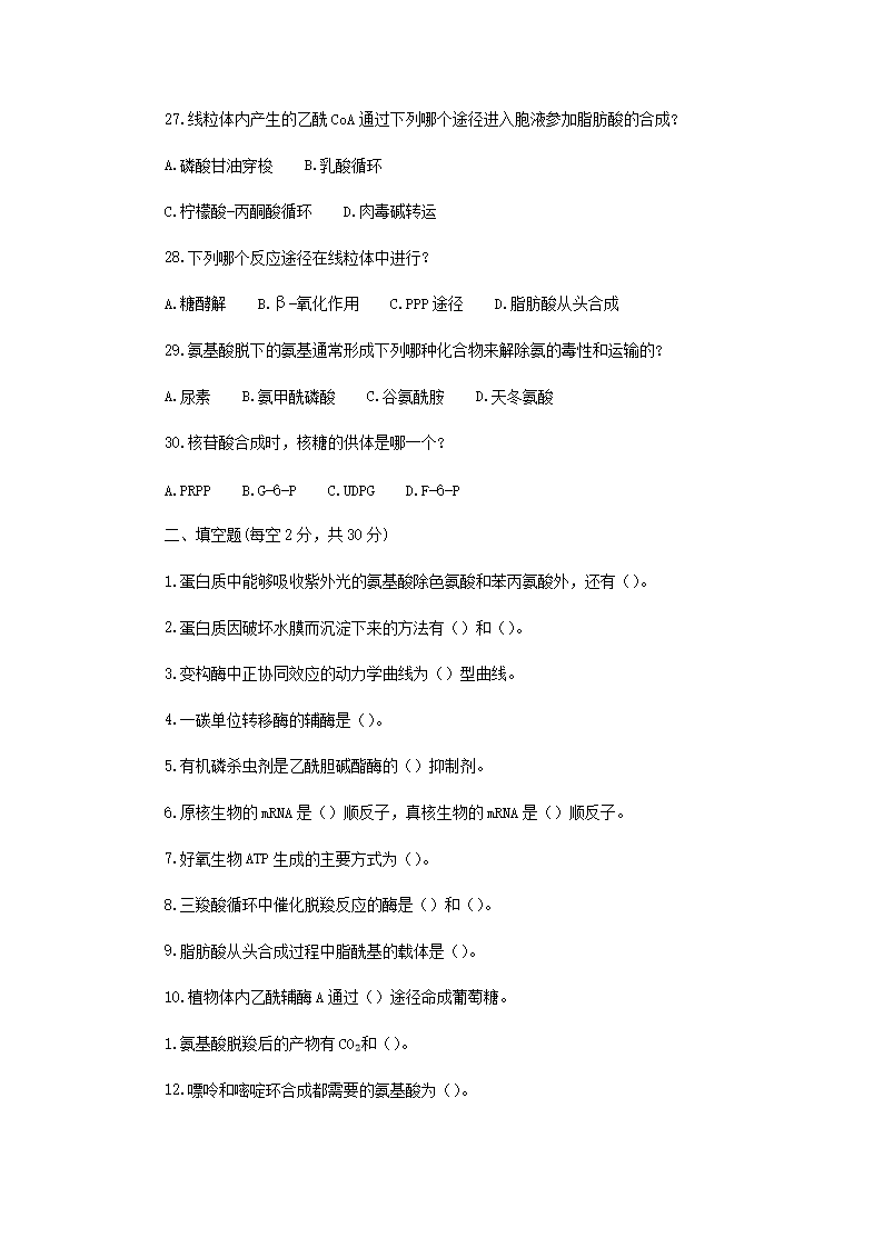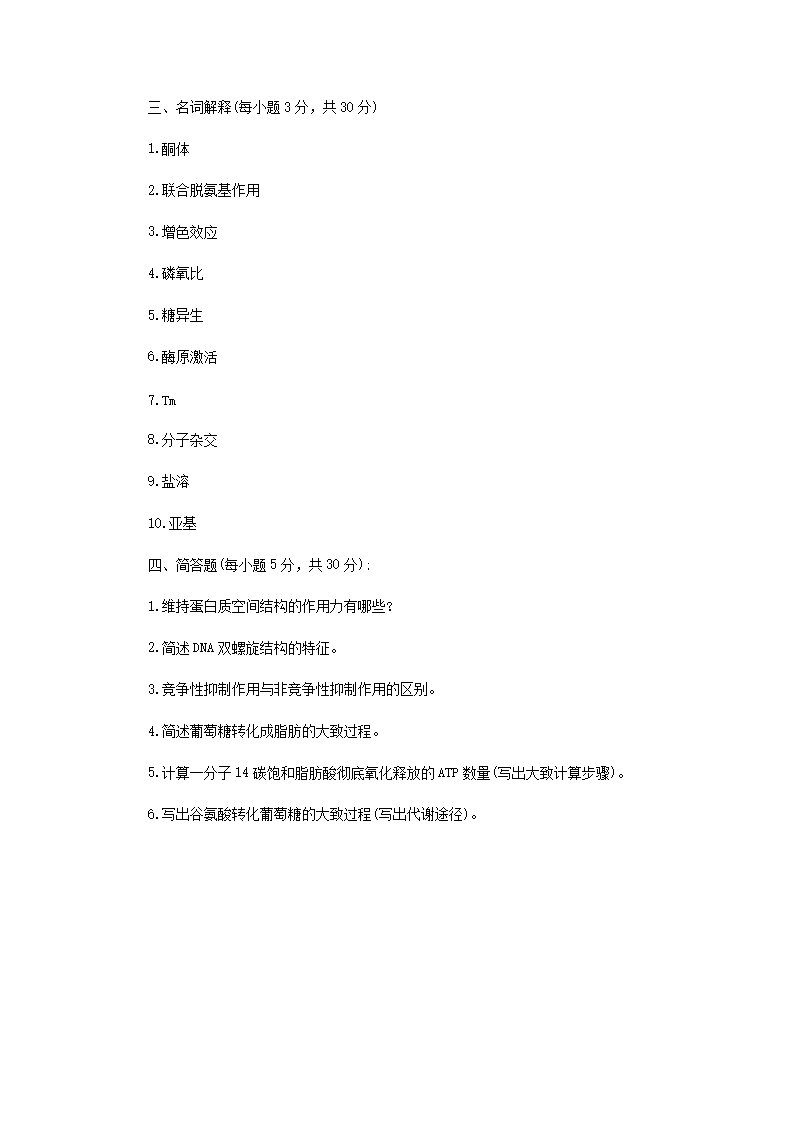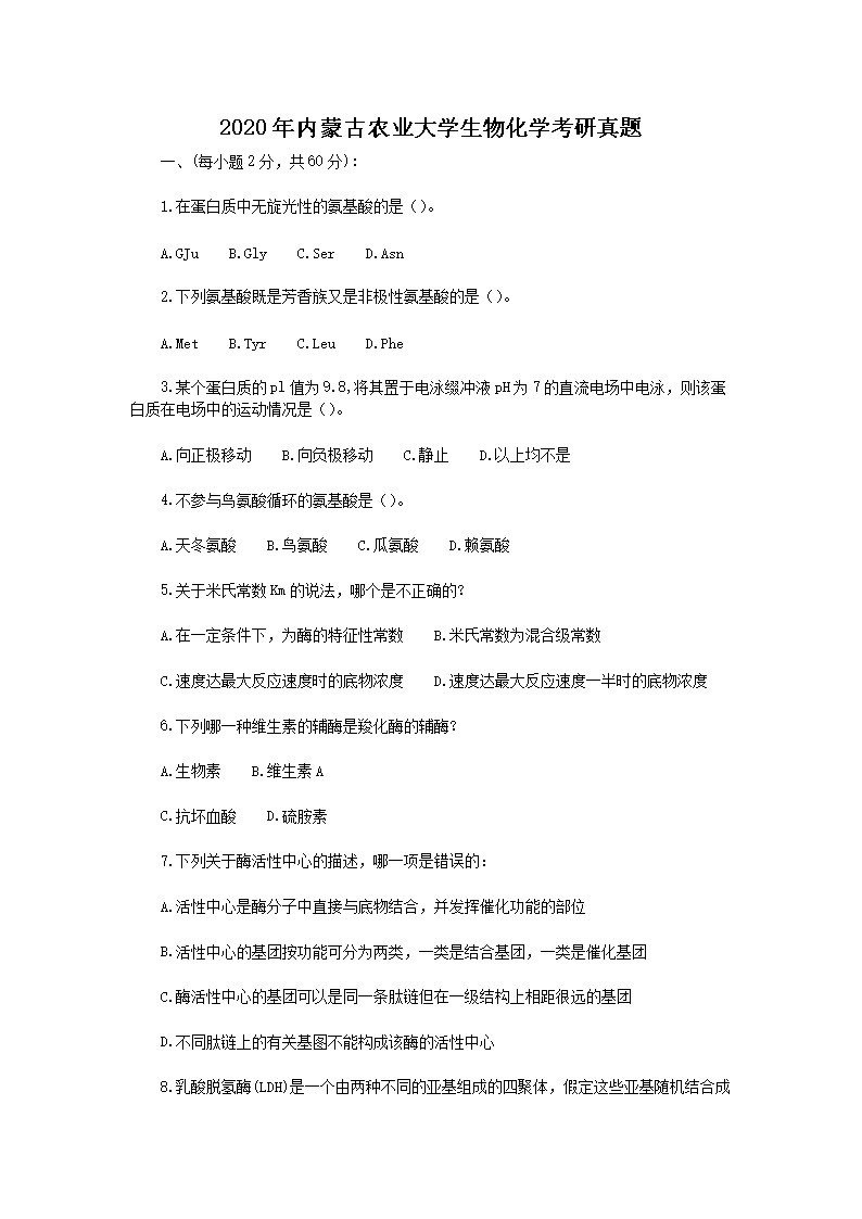 2020年内蒙古农业大学生物化学考研真题(Word版)07-26