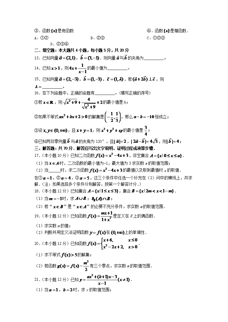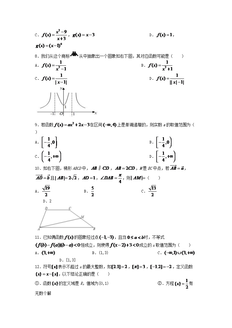 2021-2022年山西怀仁高一数学上学期期中试卷及答案(Word版)10-24