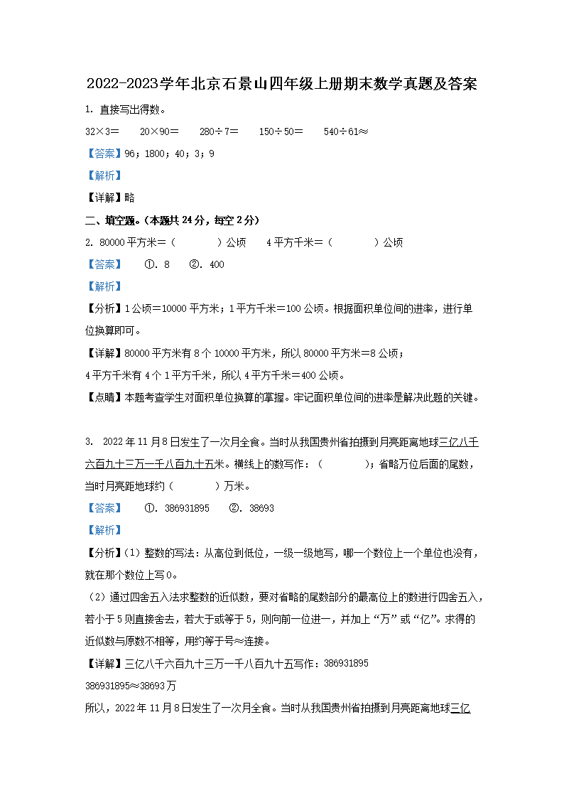 【文档预览】 文档大全网整理发布2022-2023学年北京石景山四年级上册期末数学真题及答案(Word版),前五页预览如下: