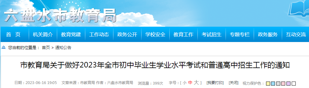 根据《省教育厅办公室关于做好2023年初中学业水平考试有关工作的通知》和《省教育厅办公室关于做好2023年普通中小学招生入学工作的通知》精神,结合我市实际,现就做好全市2023年初中毕业生学业水平考试(以下简称“中考”)与普通高中招生工作的有关事项通知如下: