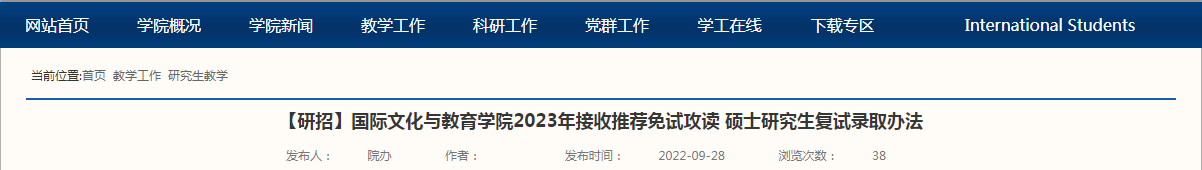 浙江师范大学国际文化与教育学院2023年接收推荐免试攻读硕士研究生复试录取办法09-30