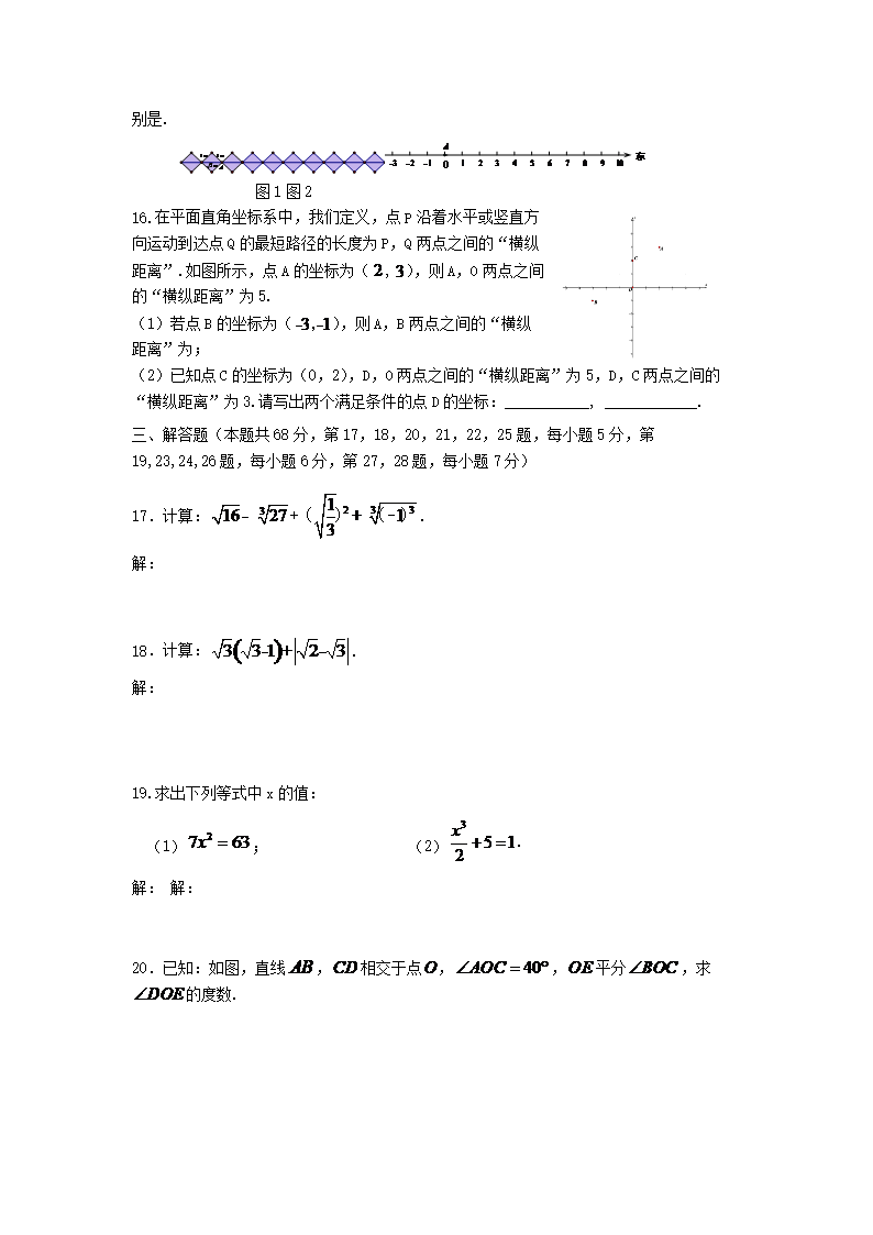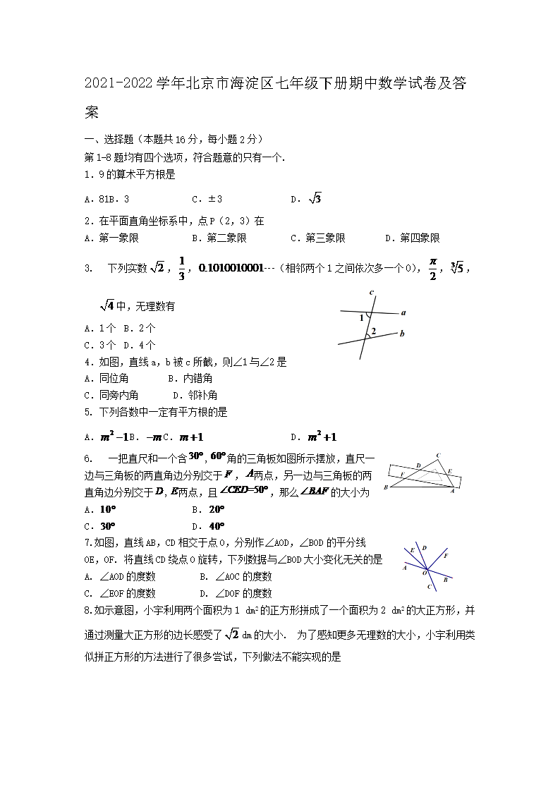 2021-2022学年北京市海淀区七年级下册期中数学试卷及答案(Word版)07-29