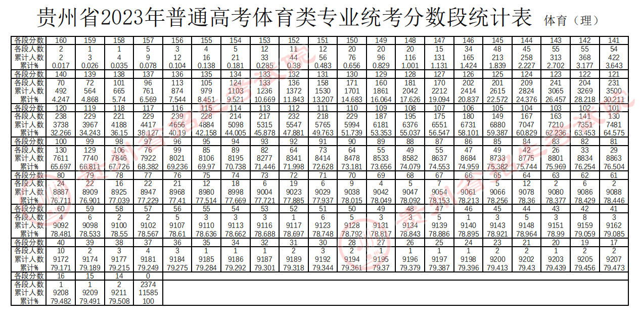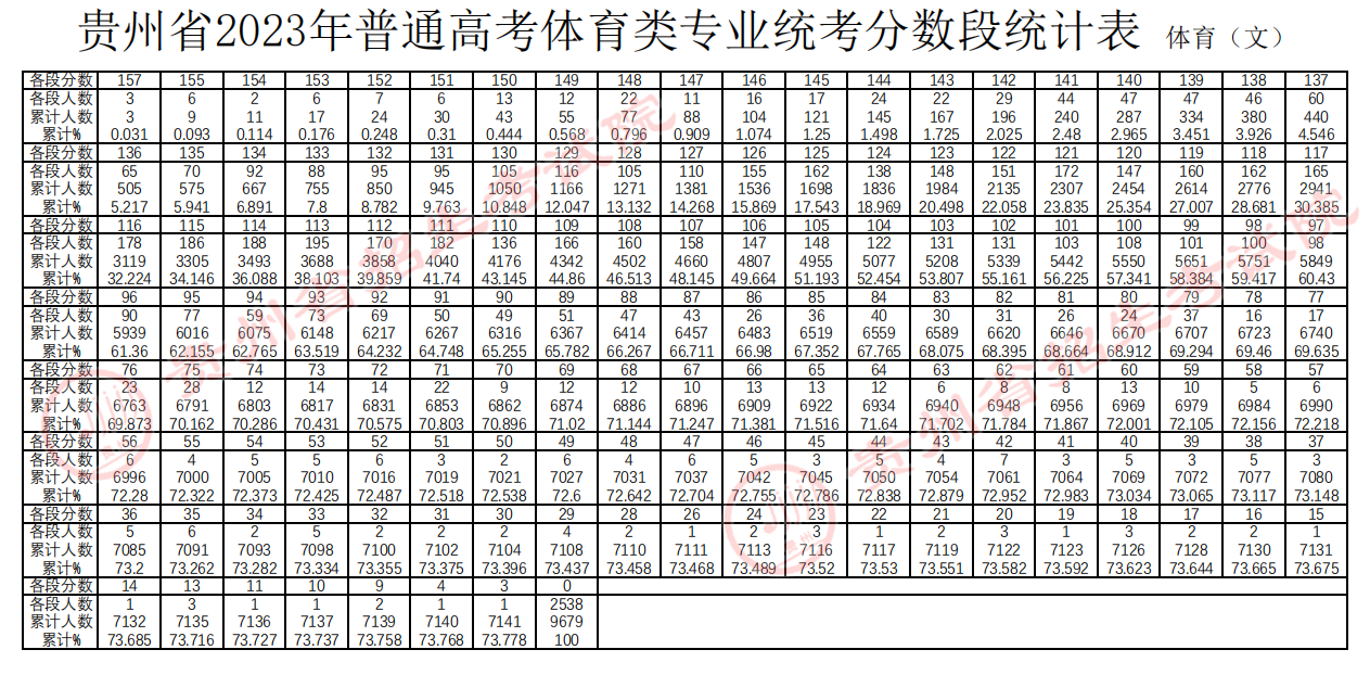 2023年贵州普通高考体育类专业统考合格线、考生成绩、分数段统计表已公布05-09