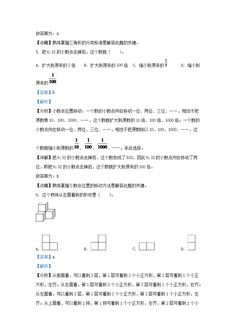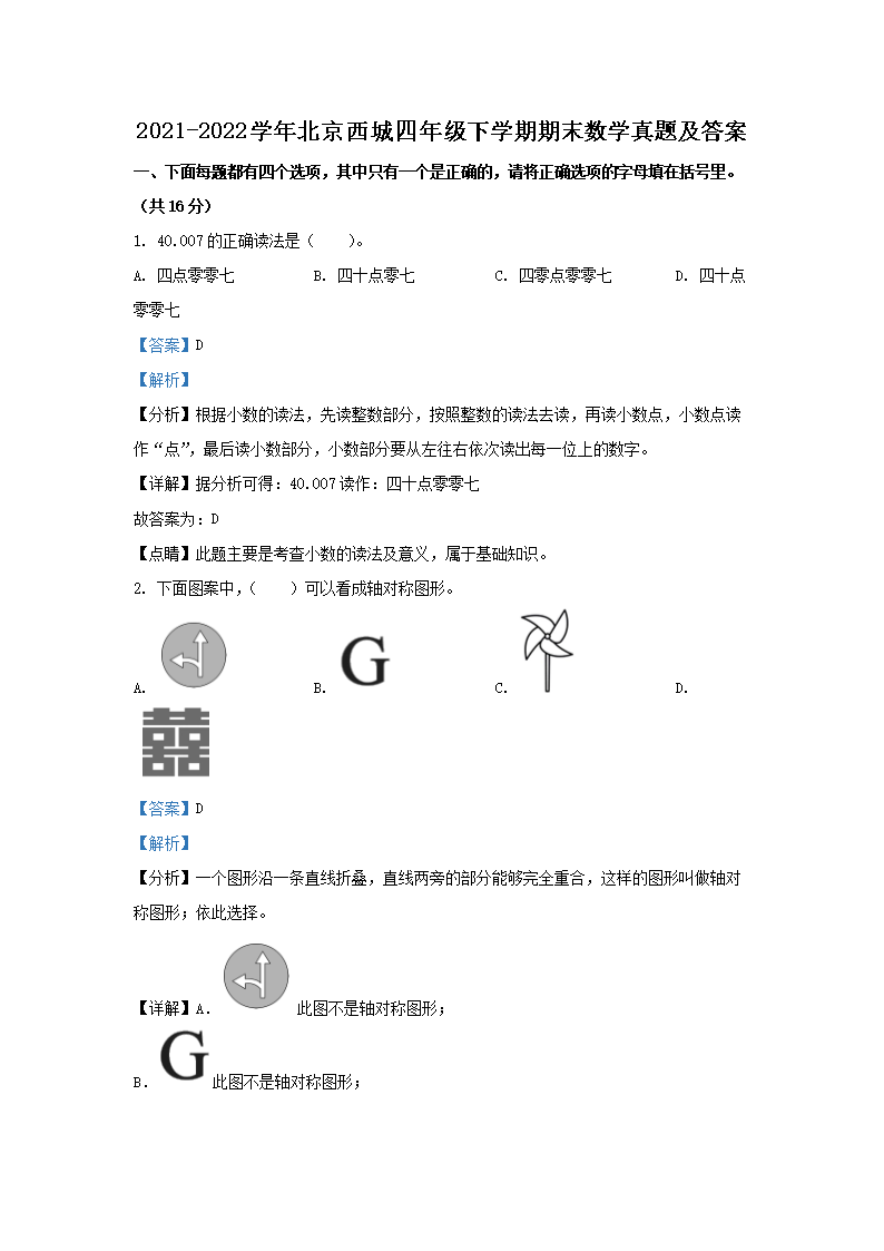 2021-2022学年北京西城四年级下学期期末数学真题及答案(Word版)07-08