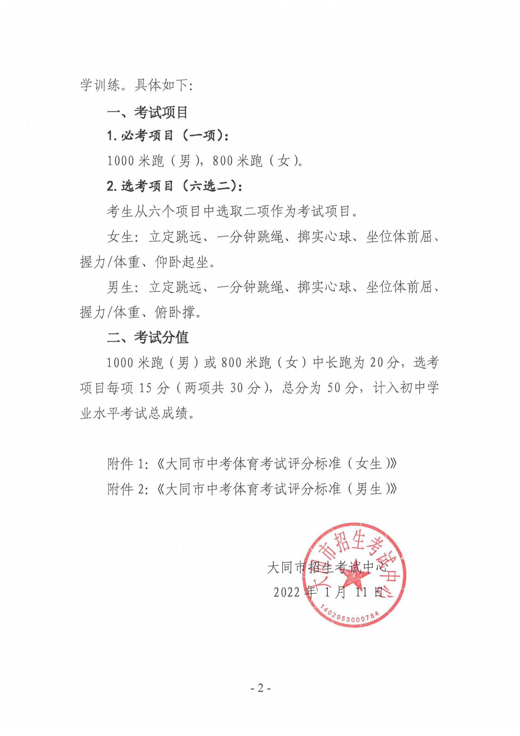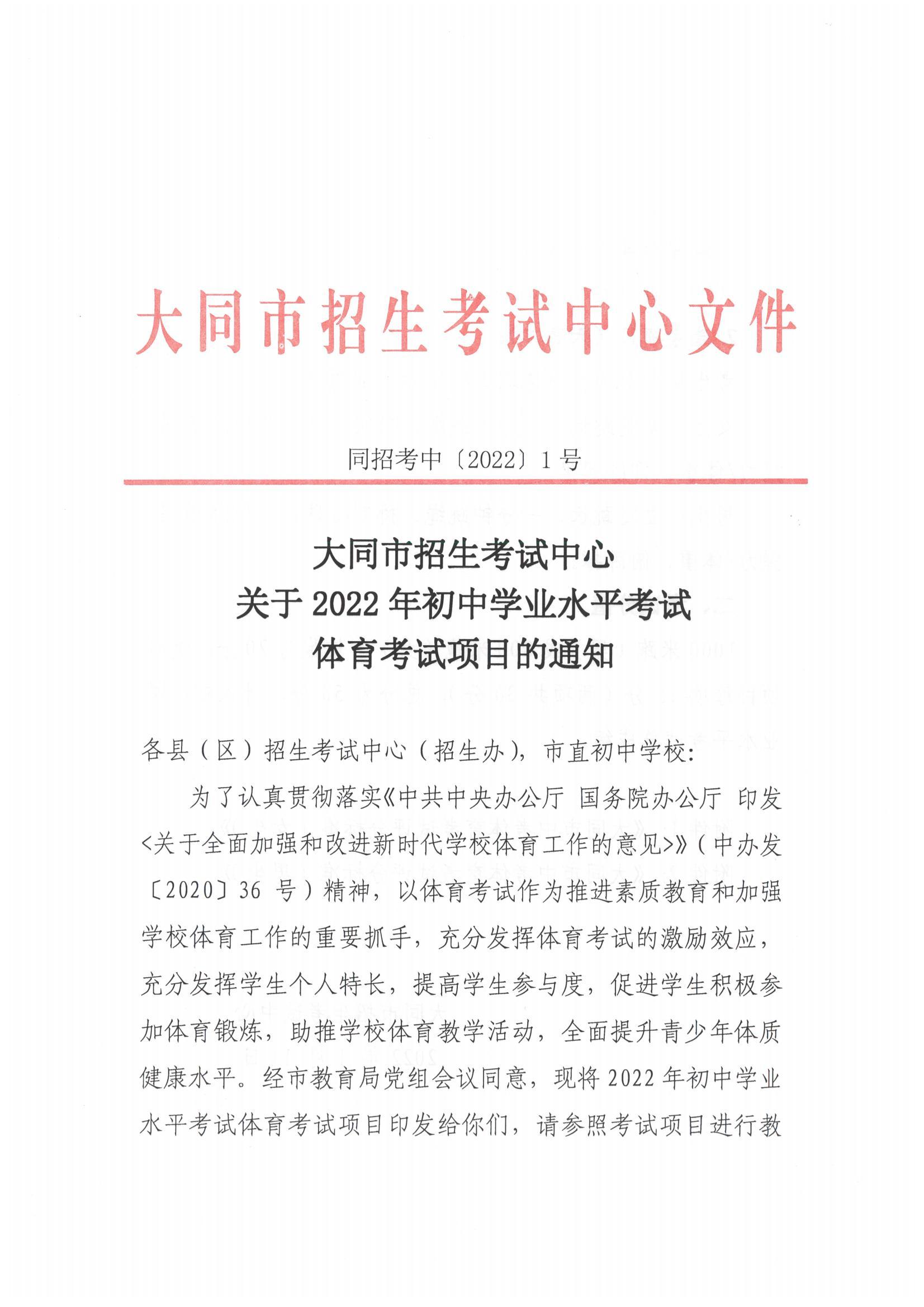 山西大同2022年中考体育考试项目通知03-26