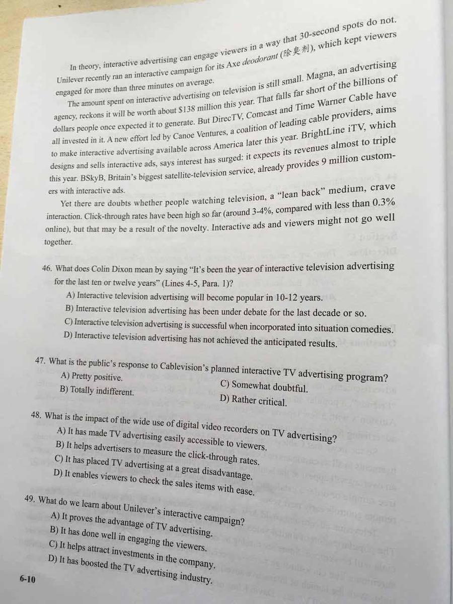 2016年12月英语六级阅读真题及答案 第1套|2016年上半年英语六级阅读真题(图片版)03-09