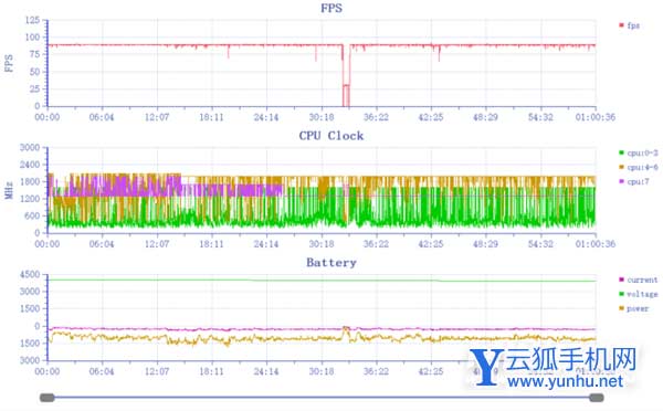 在《和平精英》的测试项目中,vivo X80 Pro天玑9000版几乎是毫无压力地以接近满帧的表现运行游戏,《和平精英》在1小时的游戏时间里取得了89.35fps的平均成绩。从帧率曲线来看除了游戏结束对局回到大厅(读条和大厅都有帧率限制)后出现了一些波动,其余时间基本都保持在90fps水准。