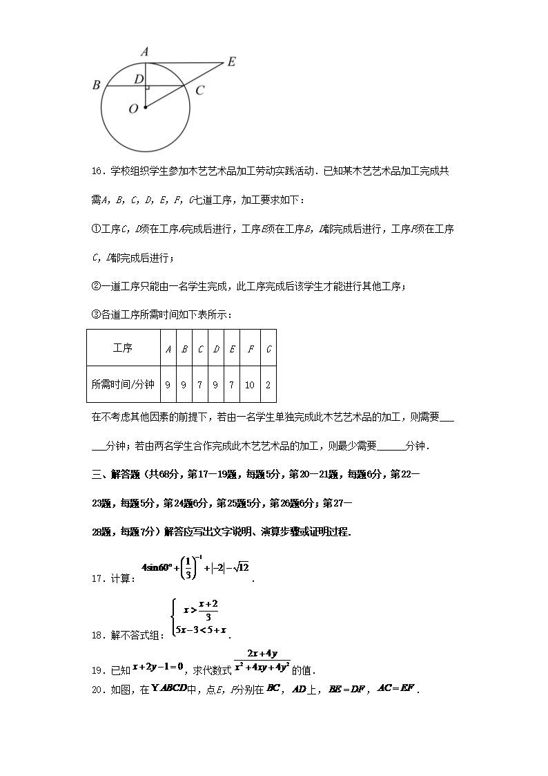 2023年北京海淀中考数学真题及答案(Word版)07-14