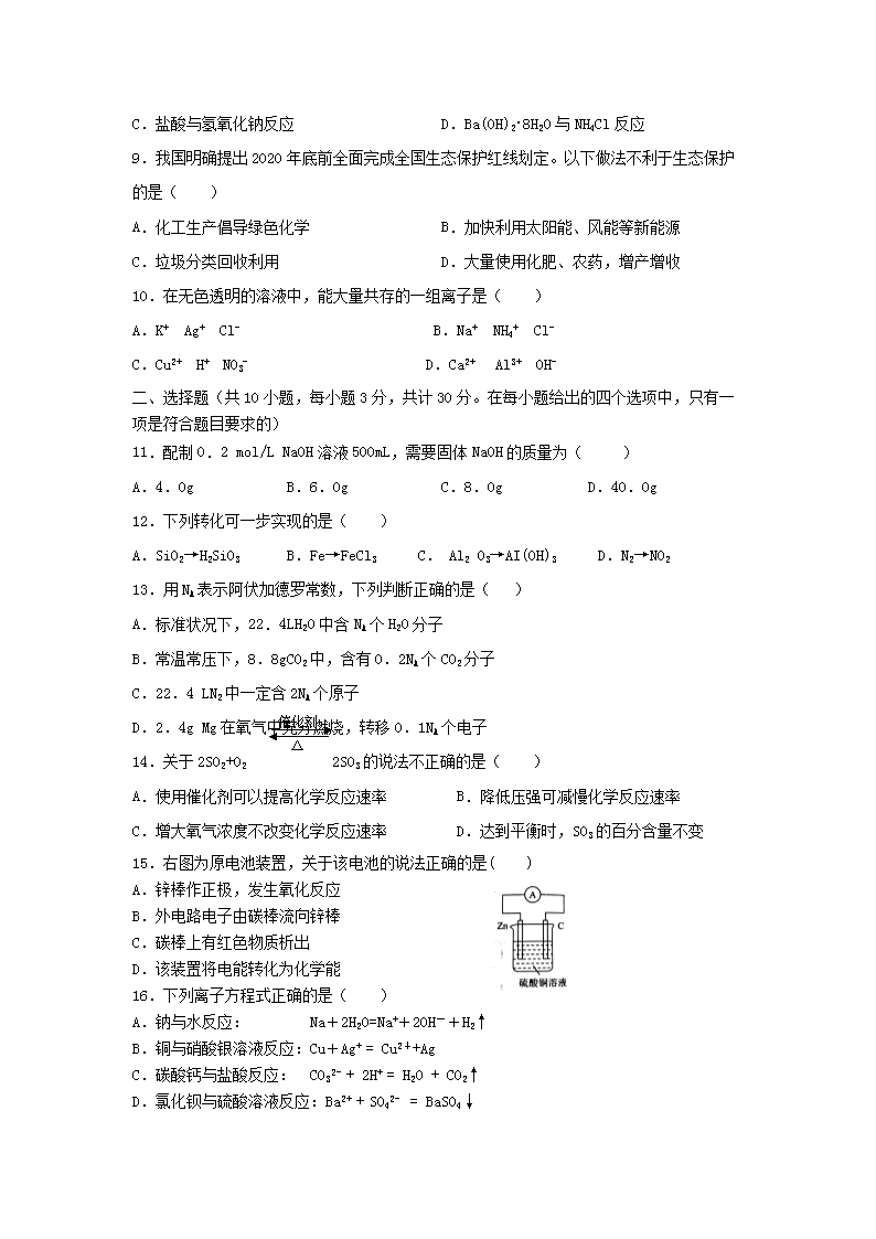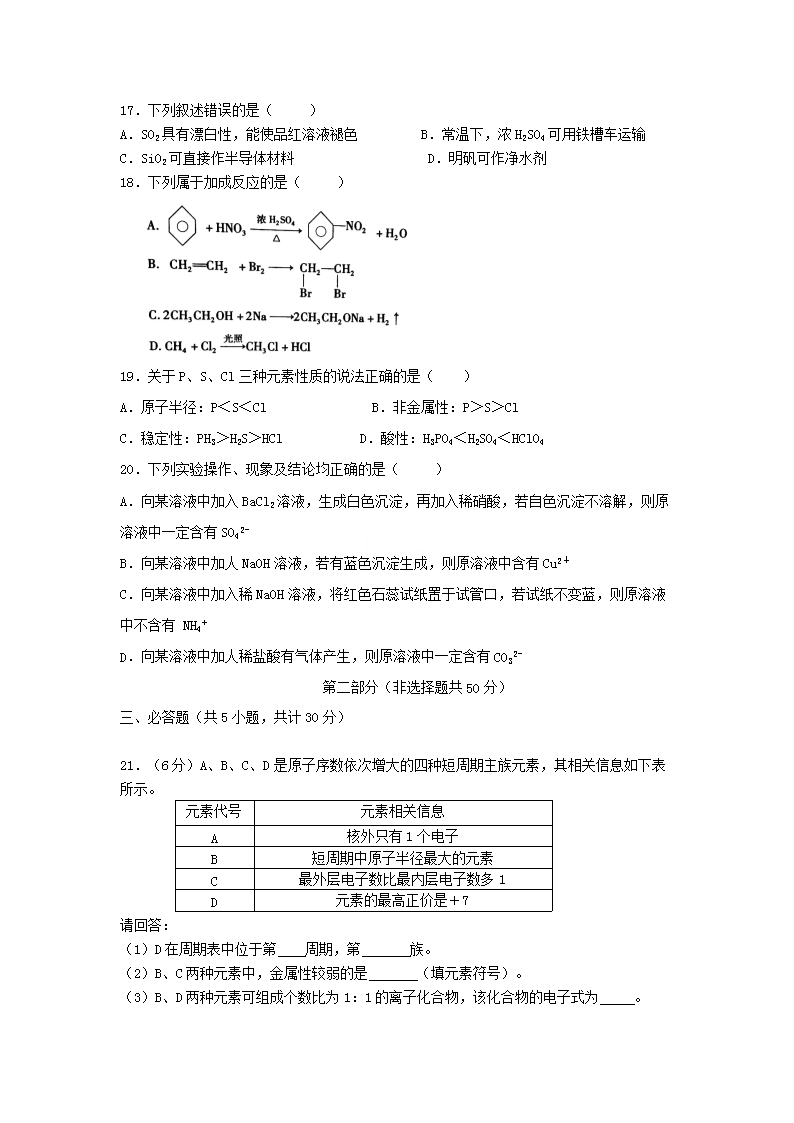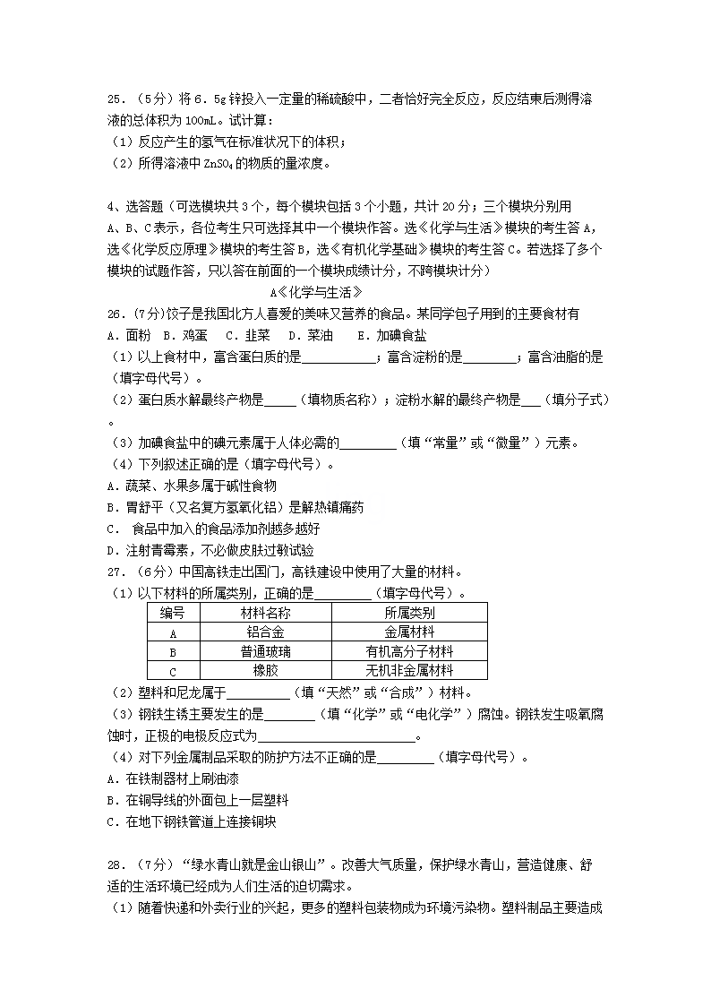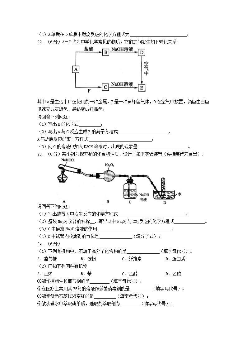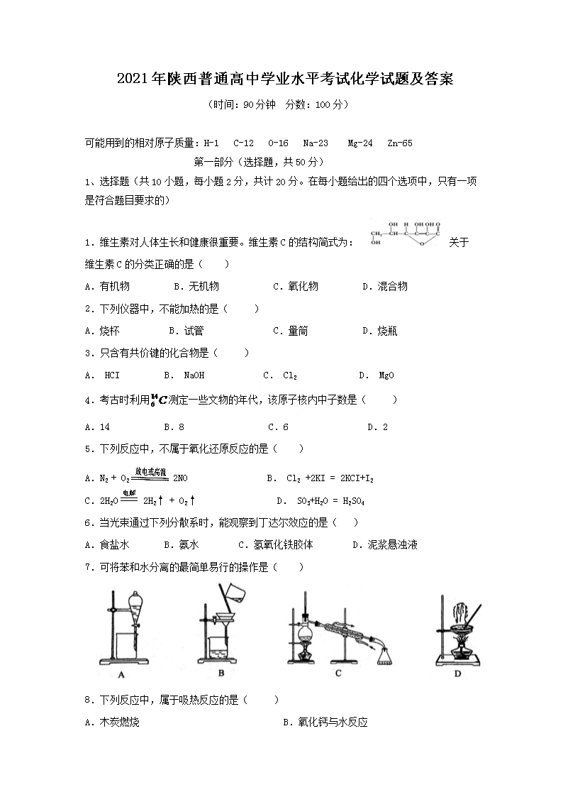 2021年陕西普通高中学业水平考试化学试题及答案(Word版)06-30