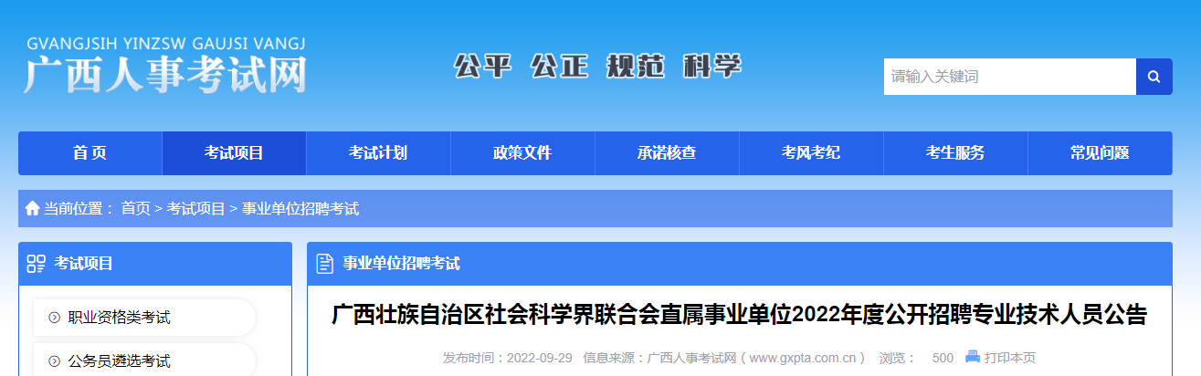 2022年度广西壮族自治区社会科学界联合会直属事业单位专业技术人员公开招聘公告10-01