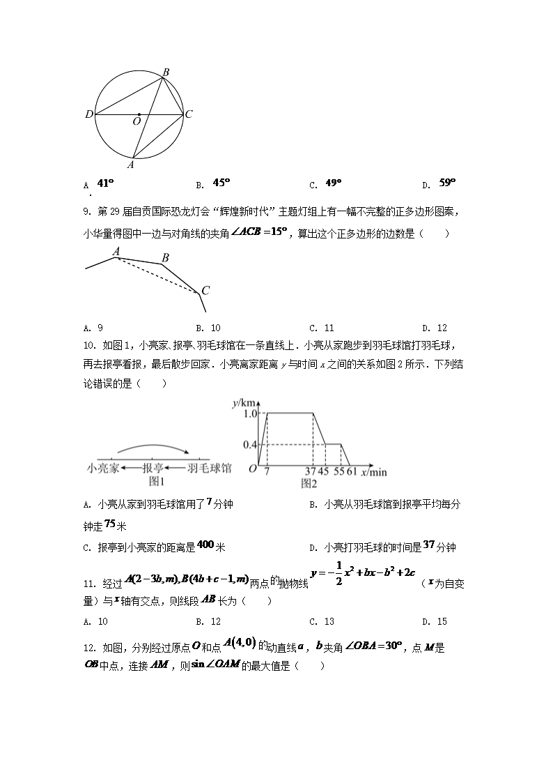 2023年四川自贡中考数学真题及答案(Word版)06-15