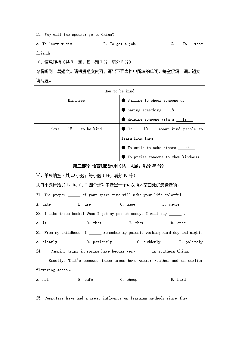 2023年安徽池州中考英语试题及答案(Word版)06-21