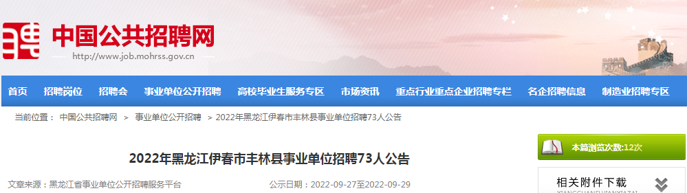 于2022年9月21日-9月29日,通过黑龙江省人力资源和社会保障厅网站、丰林县人民政府网站、丰林人社公众号向社会发布公告。