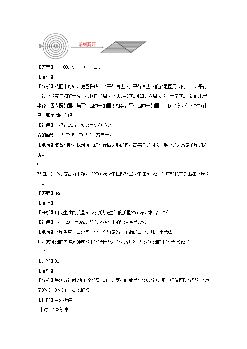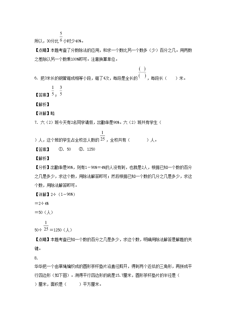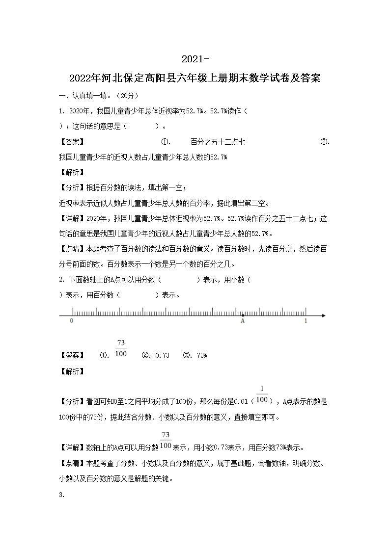 2021-2022年河北保定高阳县六年级上册期末数学试卷及答案(Word版)09-23