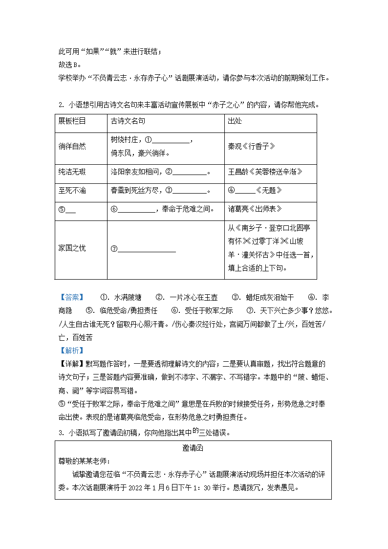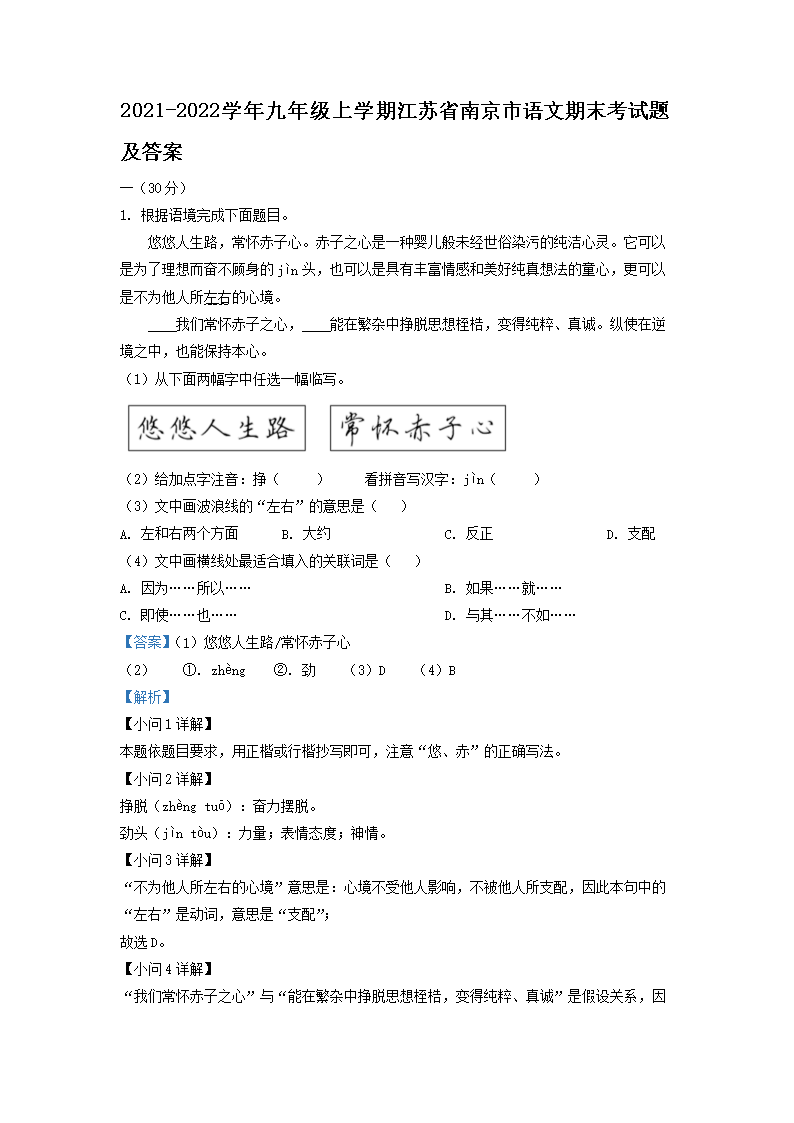 2021-2022学年九年级上学期江苏省南京市语文期末考试题及答案(Word版)09-07