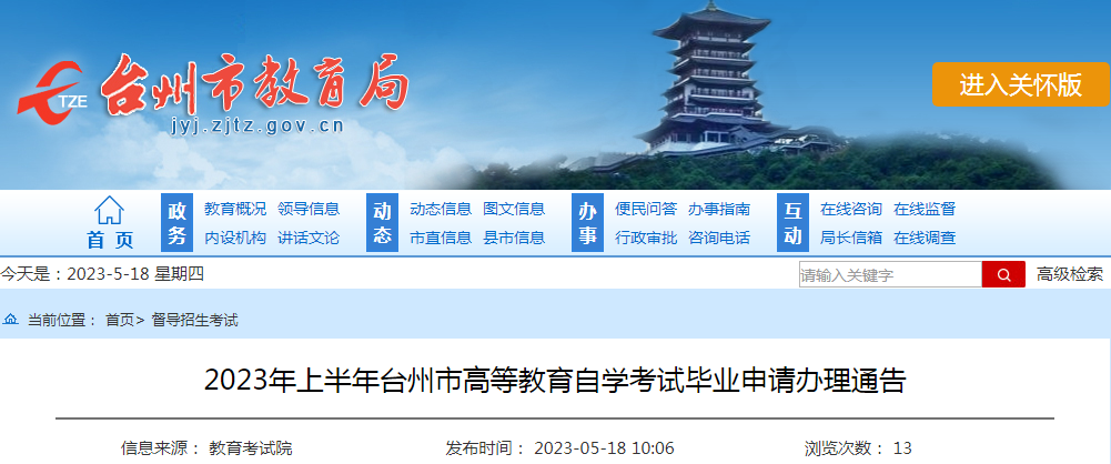 原文标题:2023年上半年台州市高等教育自学考试毕业申请办理通告
