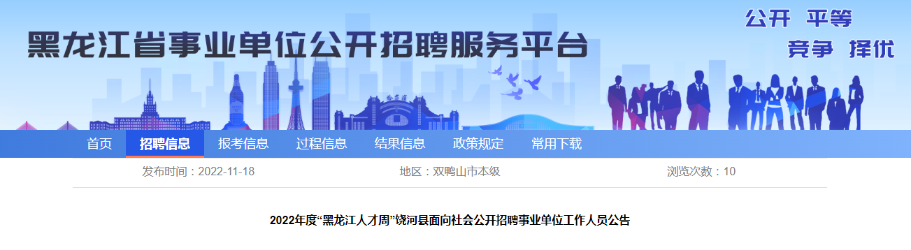 2022年黑龙江省双鸭山市饶河县“黑龙江人才周”面向社会事业单位工作人员公开招聘公告11-19