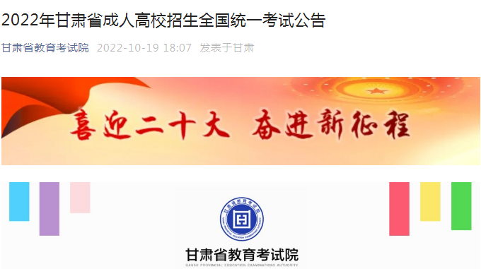 【#成考# 导语】©文档大全网成人高考频道从甘肃省教育考试院了解到,2022年甘肃省成人高校招生全国统一考试公告已发布,详情如下: