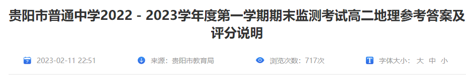 原文标题:贵阳市普通中学2022-2023学年度第一学期期末监测考试高二地理参考答案及评分说明