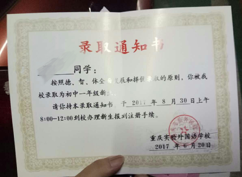 下面是2017年重庆620大考重庆实验外国语小升初录取通知,欢迎大家查看!