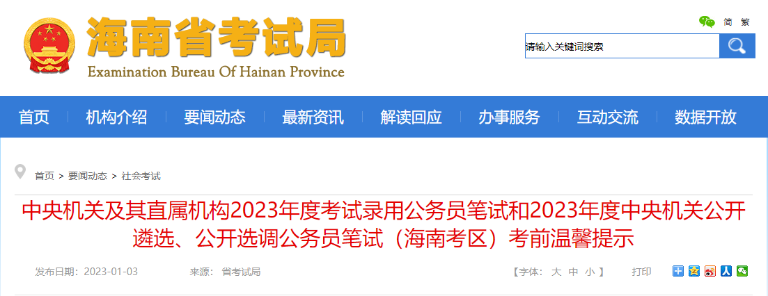 原文标题:中央机关及其直属机构2023年度考试录用公务员笔试和2023年度中央机关公开遴选、公开选调公务员笔试(海南考区)考前温馨提示