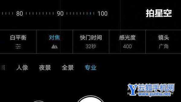 这个要长曝光,需要三脚架或者用手机支架,或手机直接扣在地上,另外天越黑越好,尽量少些光源,参数:白平衡选小太阳,或者自己调一般3800左右,对焦100或98,快门时间32S,感光度200,如果拍出来太黑就用400,镜头选广角,不用变焦!如果在城市,可以拍车水马龙,这里只需把快门时间调到4S左右,感光度100,其它默认!