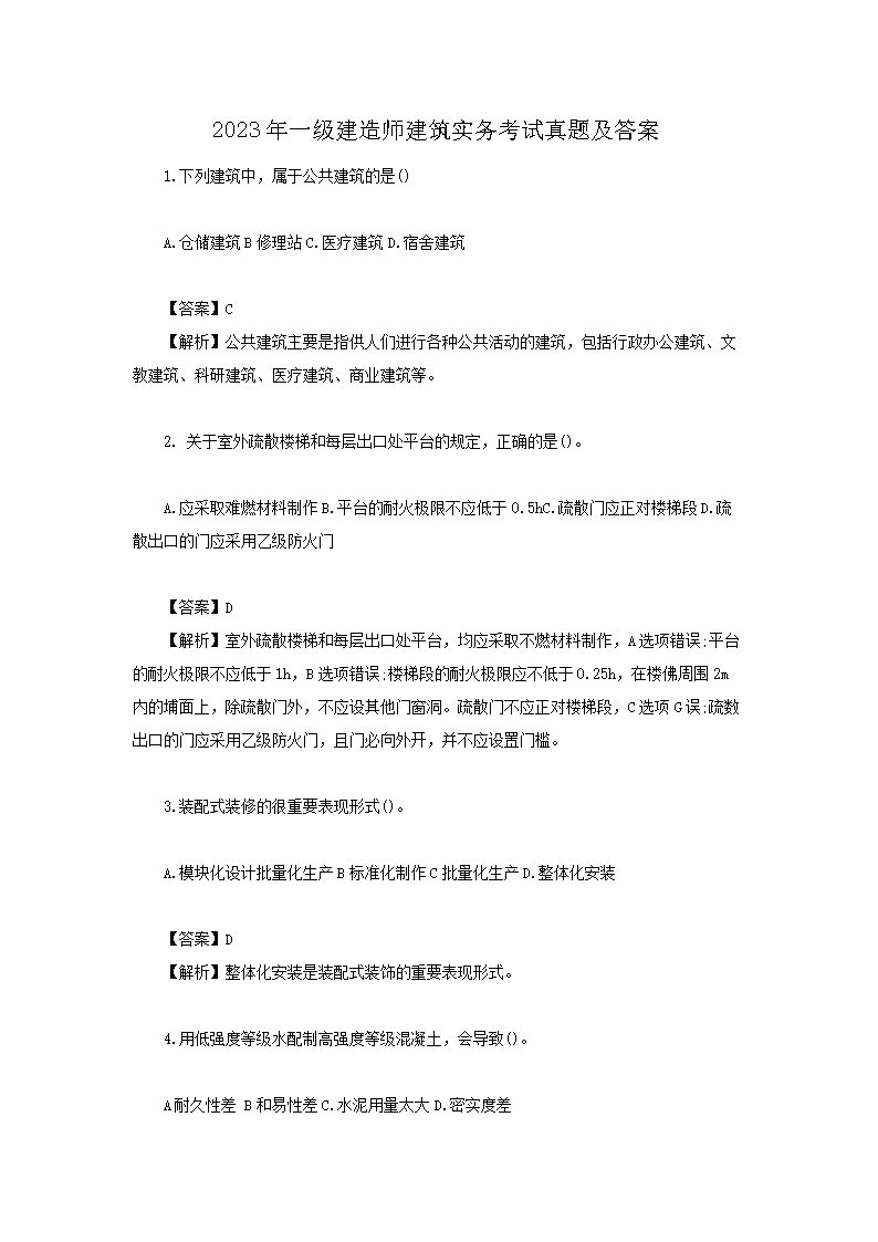 2023年一级建造师建筑实务考试真题及答案(Word版)09-13