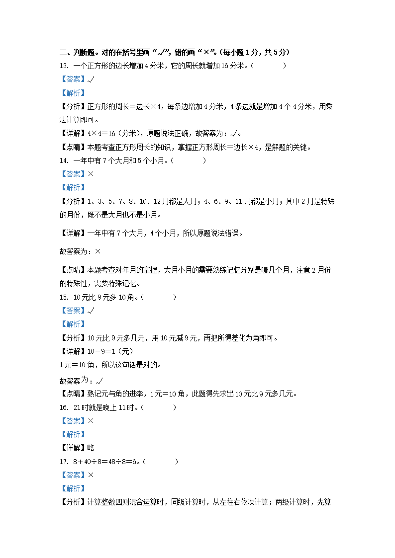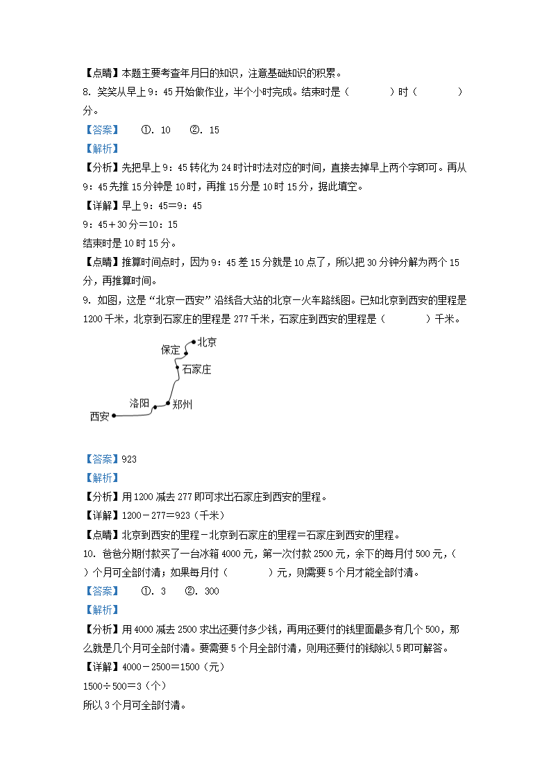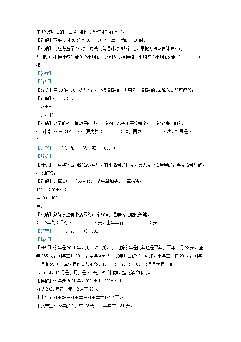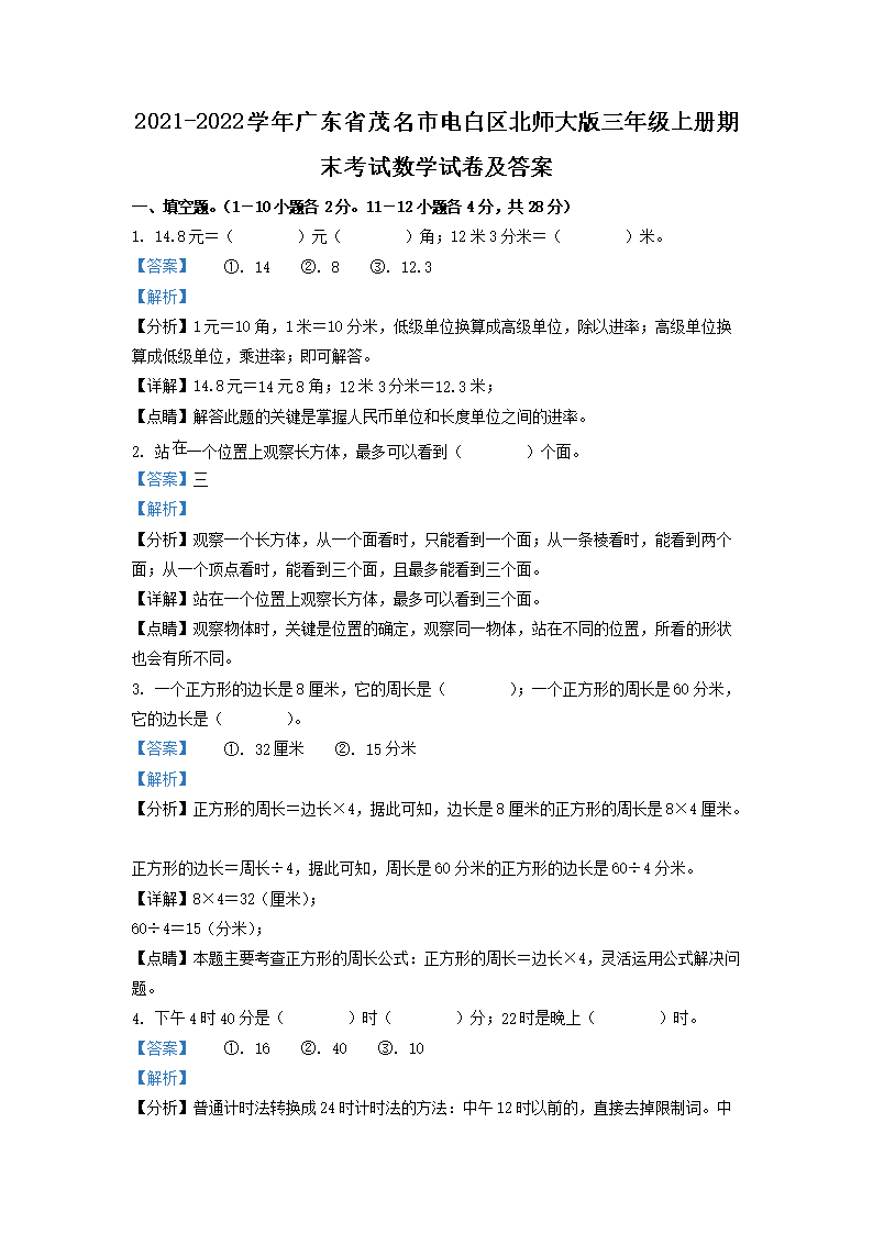 2021-2022学年广东省茂名市电白区北师大版三年级上册期末考试数学试卷及答案(Word版)08-25