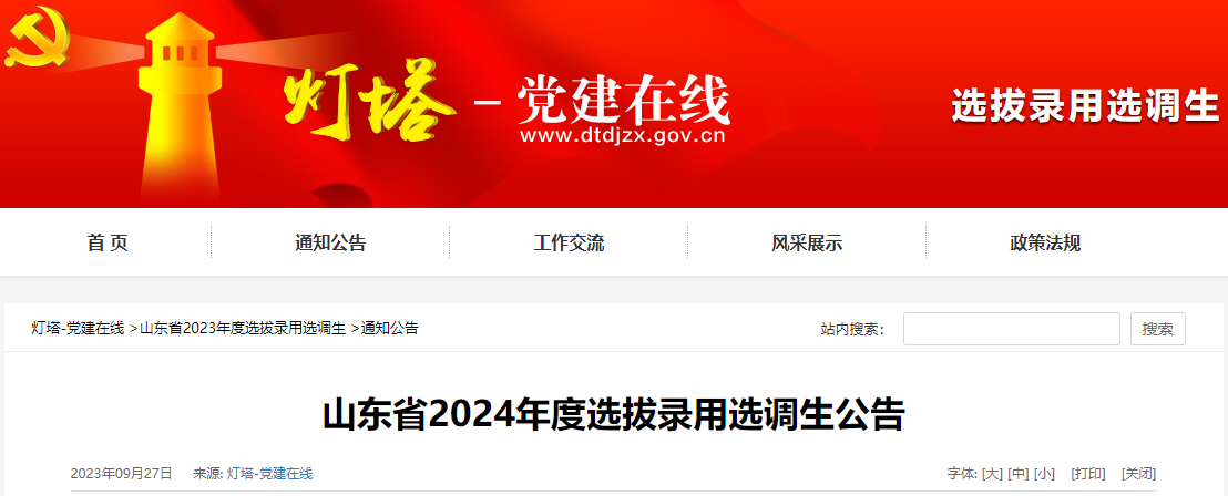 2024年第一批山东选调生考试时间:2023年10月29日09-28