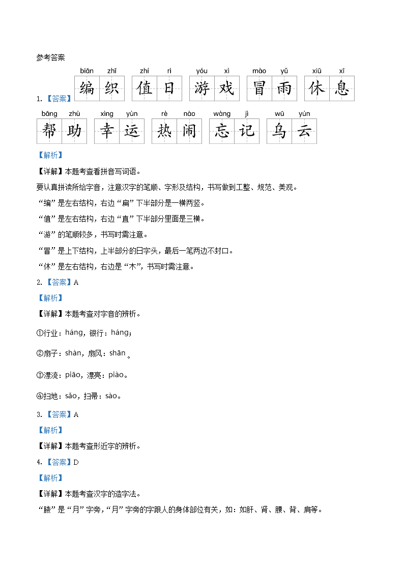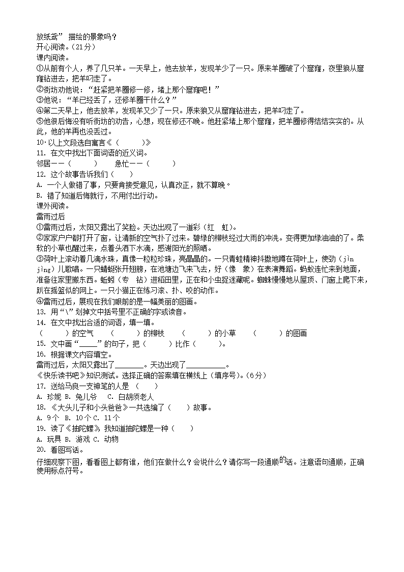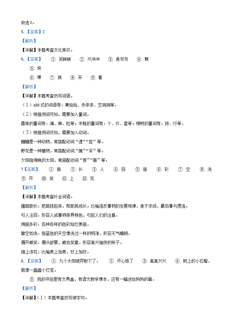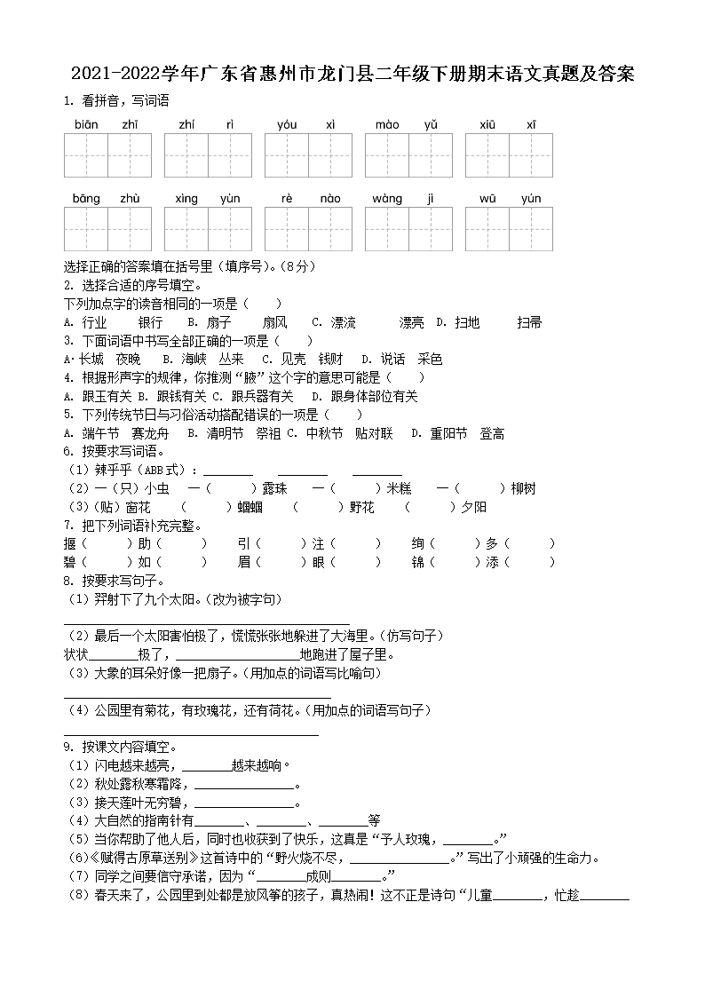 2021-2022学年广东省惠州市龙门县二年级下册期末语文真题及答案(Word版)08-01
