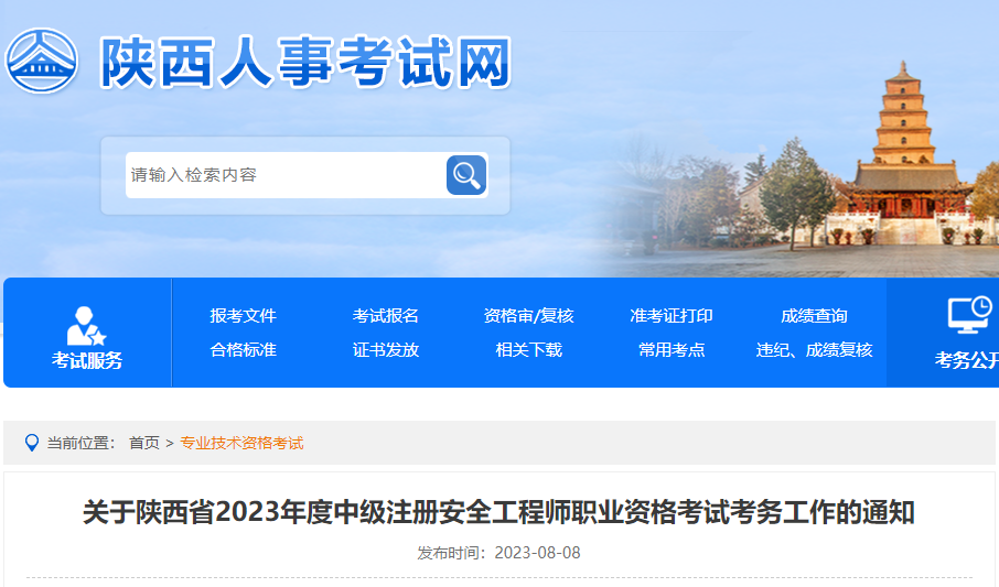 2023年陕西中级安全工程师考试报名时间:2023年8月18日至28日17:00,报名工作采用网上报名的方式,符合条件的报考人员通过“中国人事考试网(www.cpta.com.cn)”在线填写提交报考信息,并按相关规定办理网上缴费手续。