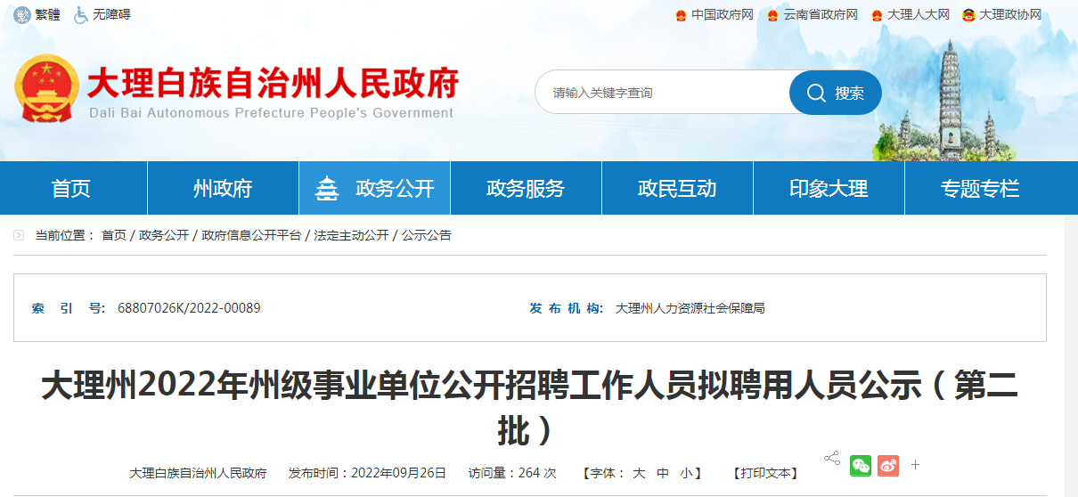 2022年云南大理州州级事业单位公开招聘工作人员拟聘用人员公示(第二批)09-28