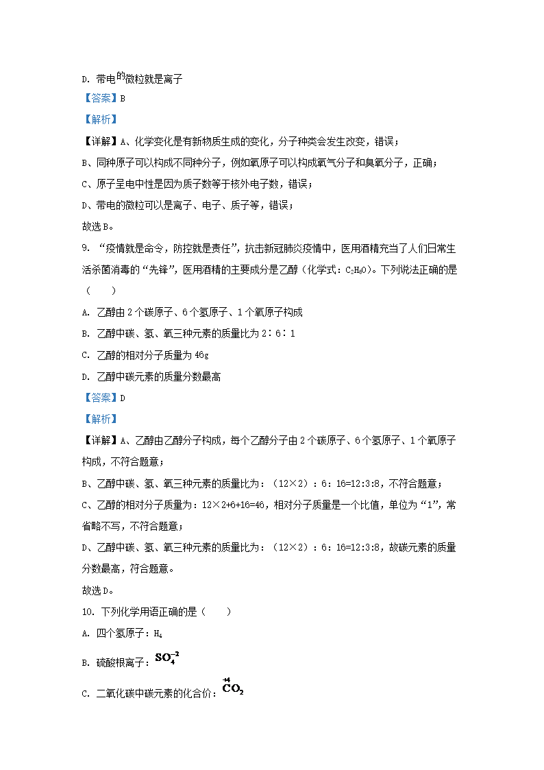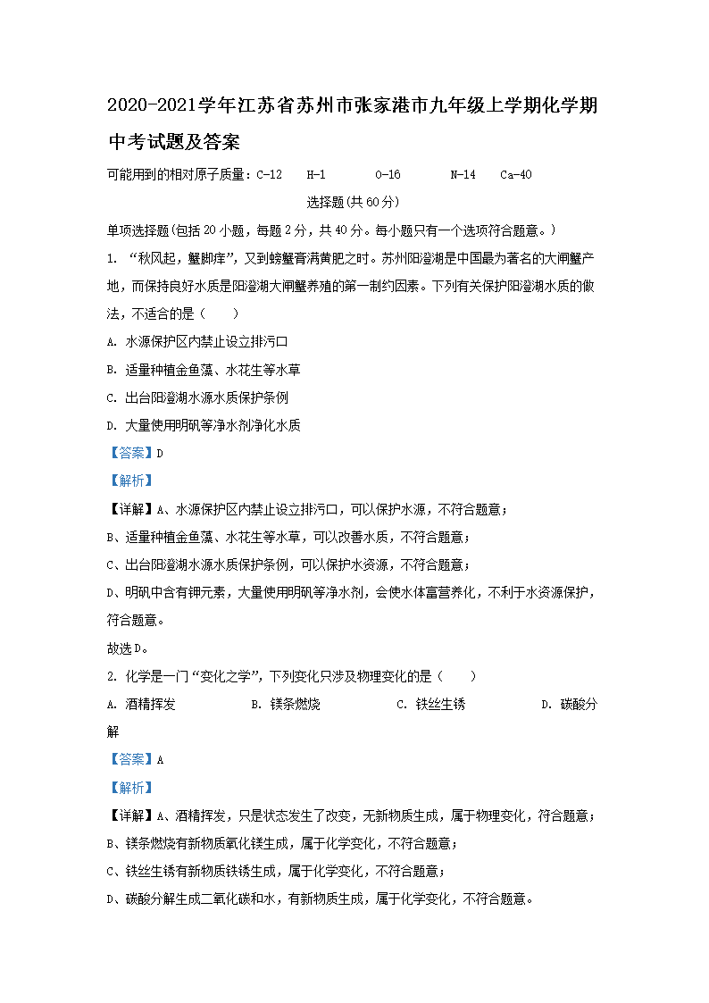 2020-2021学年江苏省苏州市张家港市九年级上学期化学期中考试题及答案(Word版)09-14
