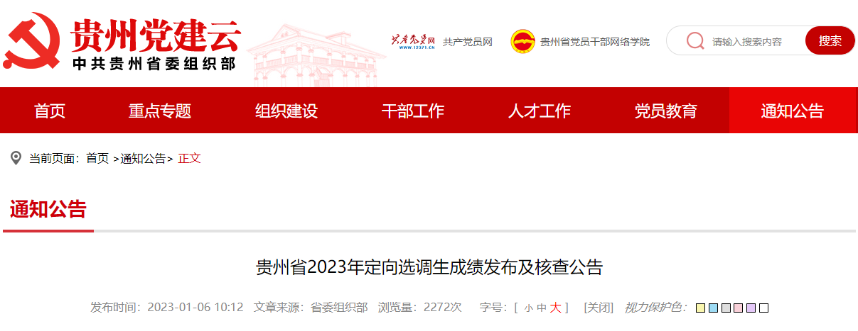 【#选调生# 导语】2023年贵州定向选调生考试成绩于2023年1月6日公布,考生通过“贵州人事考试信息网”进入“成绩查询系统”,输入“准考证号”及“姓名”进行查分。®文档大全网小编整理了2023年贵州定向选调生成绩查询相关信息如下: