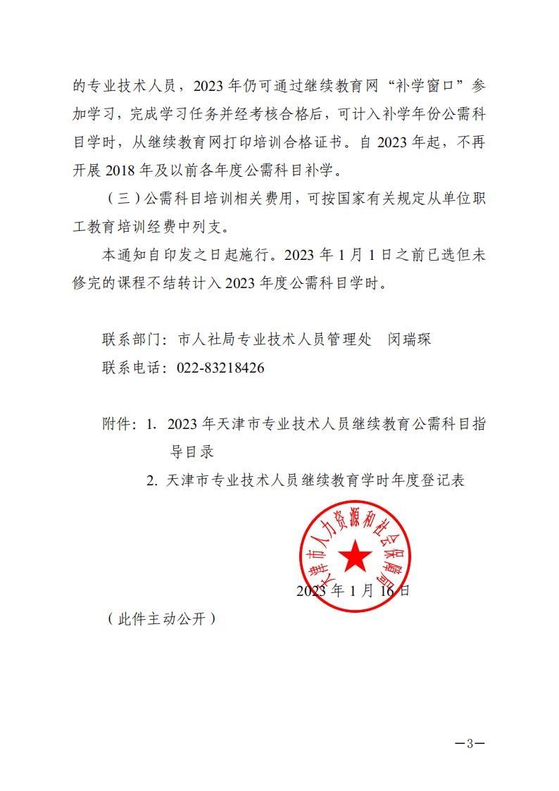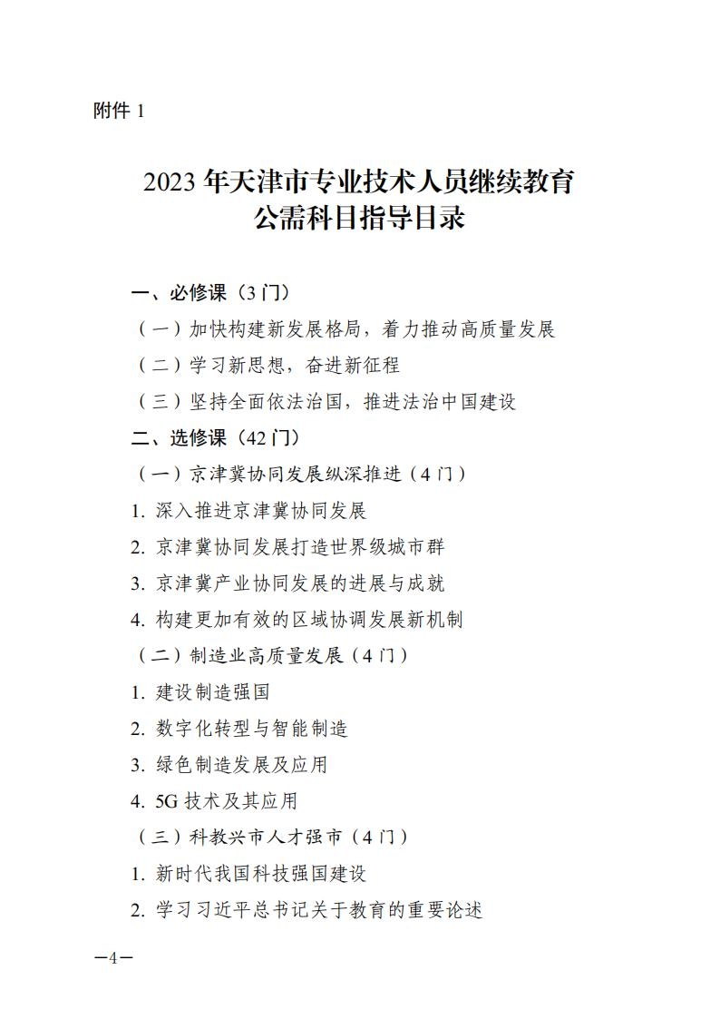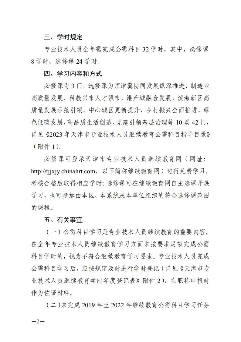 2023年天津专业技术人员继续教育公需科目学习有关事项的通知03-27