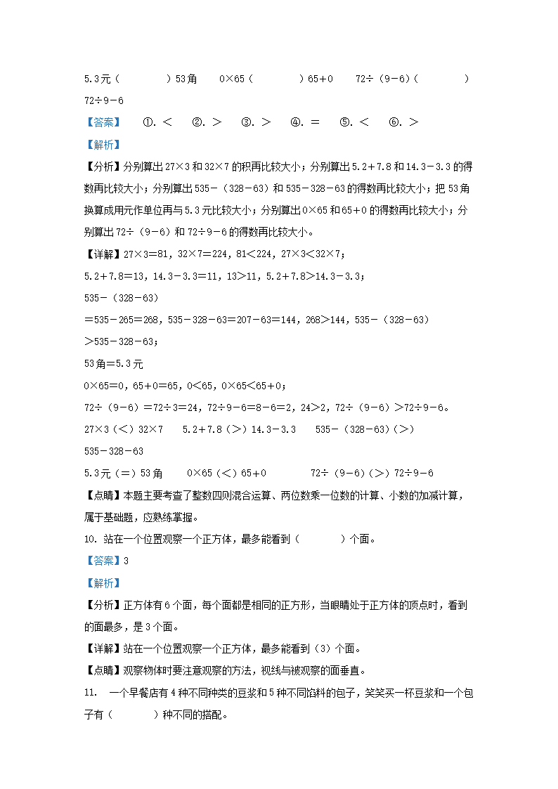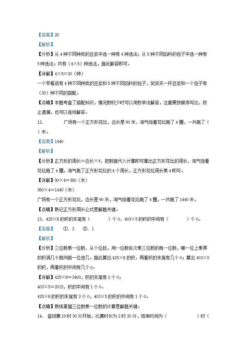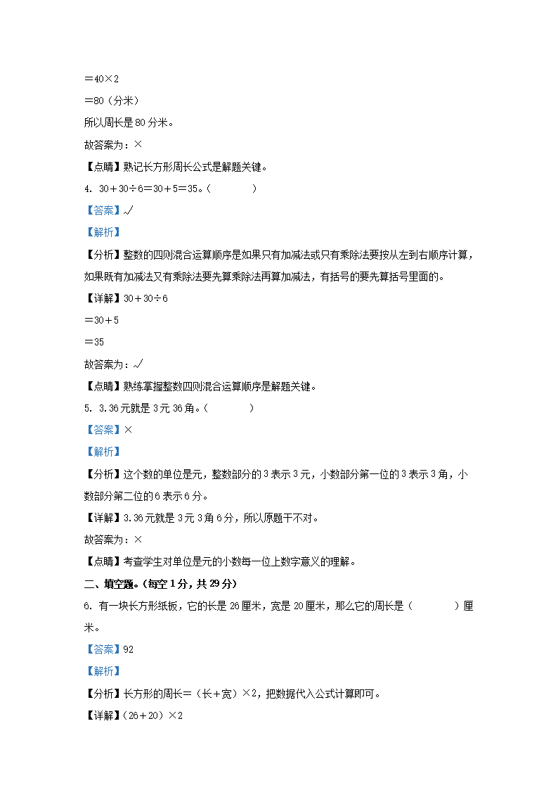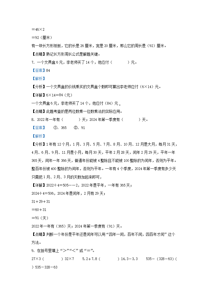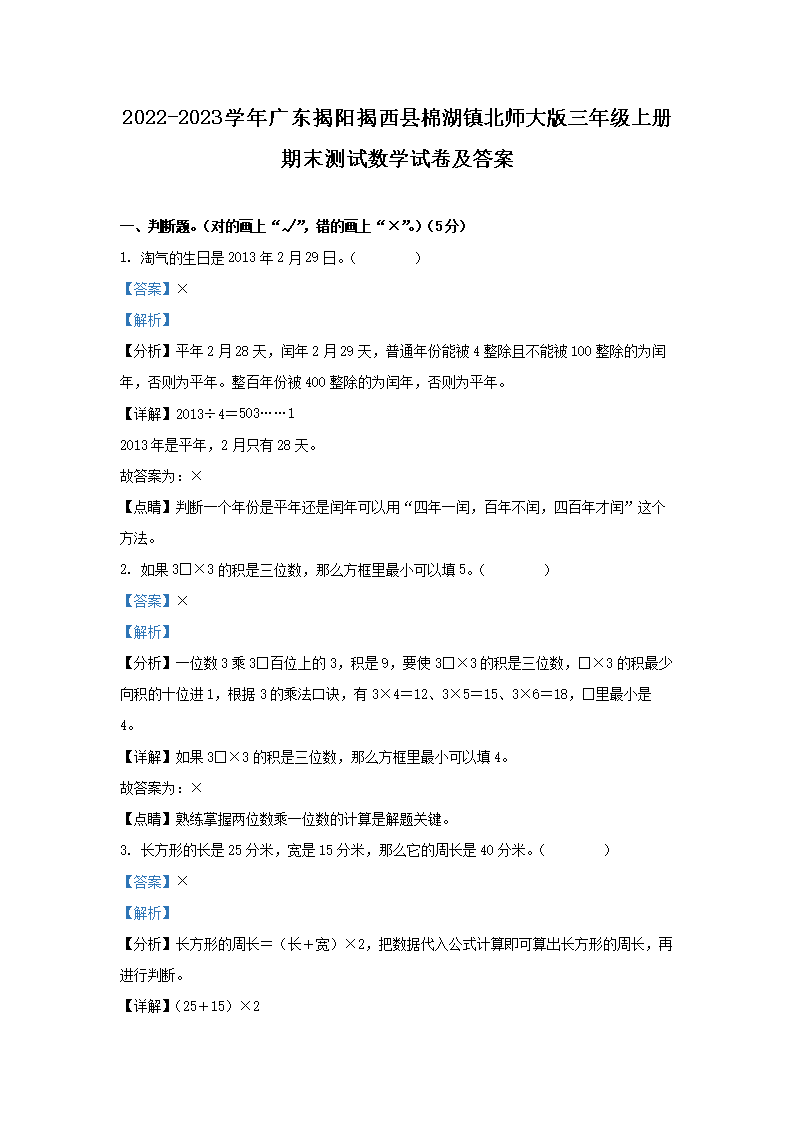 2022-2023学年广东揭阳揭西县棉湖镇北师大版三年级上册期末测试数学试卷及答案(Word版)08-24