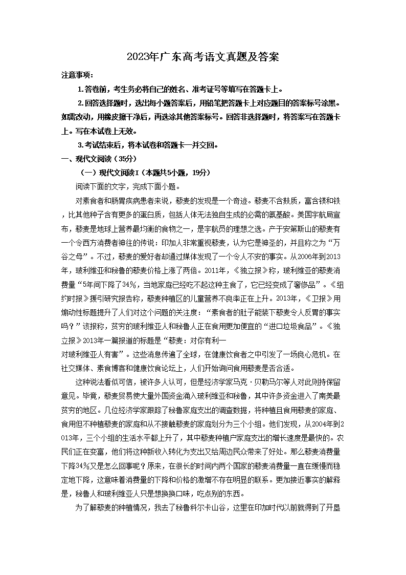 【文档预览】 文档大全网整理发布2023年广东高考语文真题及答案(Word版),前五页预览如下: